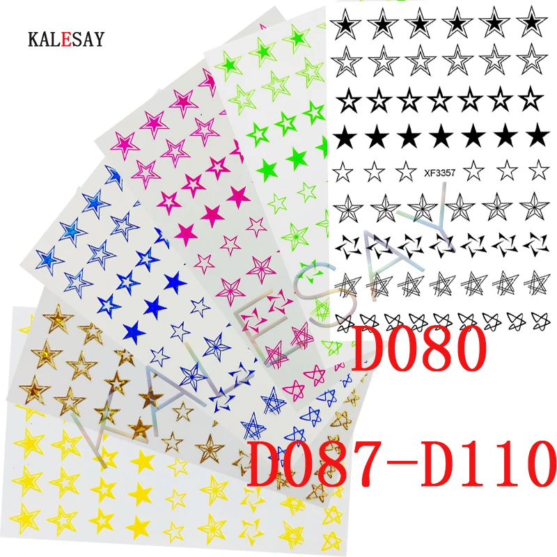 Черные, золотые, серебряные звезды, 3D брендовые наклейки для ногтей, красочные аксессуары для ногтей, клей на тыльную сторону, сердце, любовь, украшения для ногтей, наклейки, наклейки
