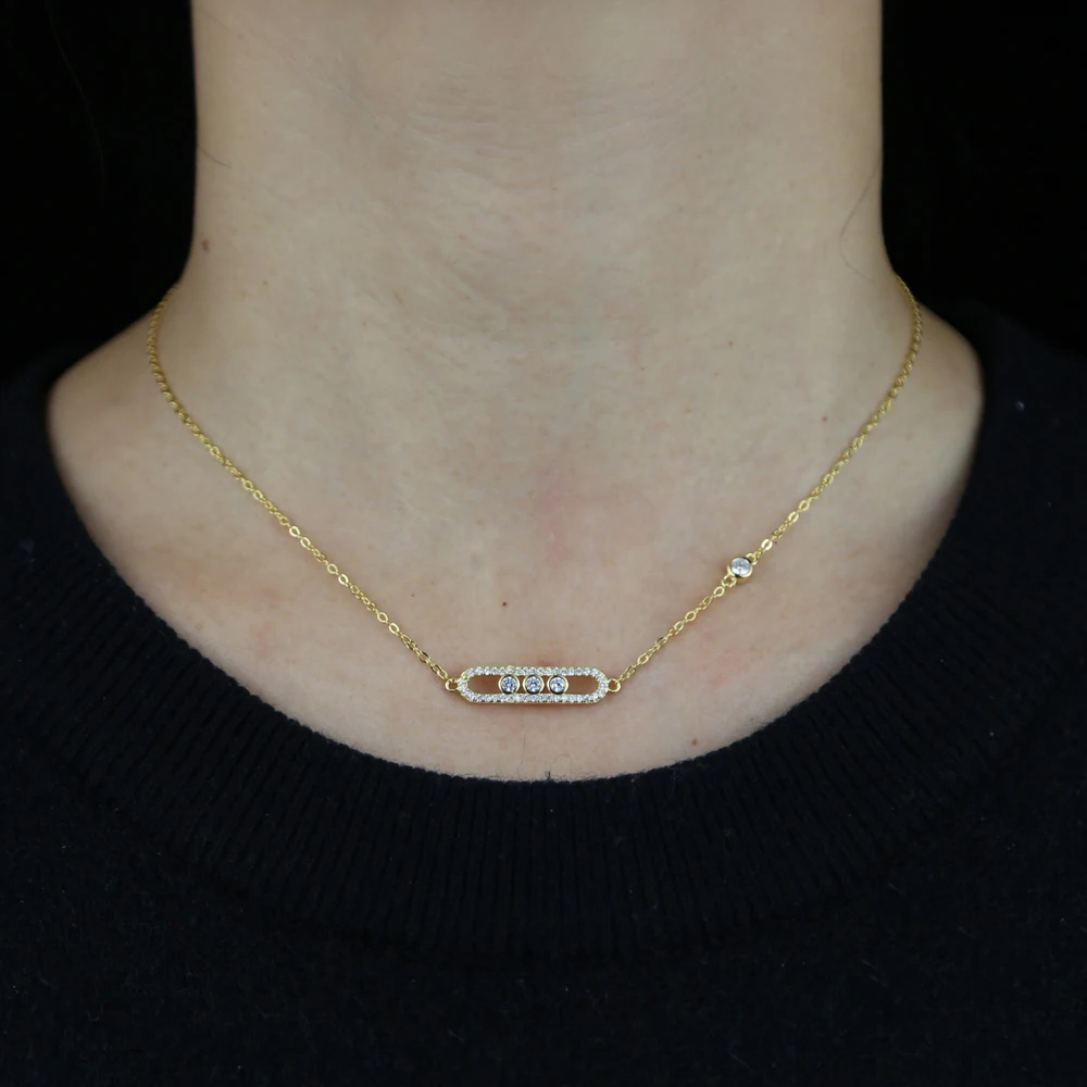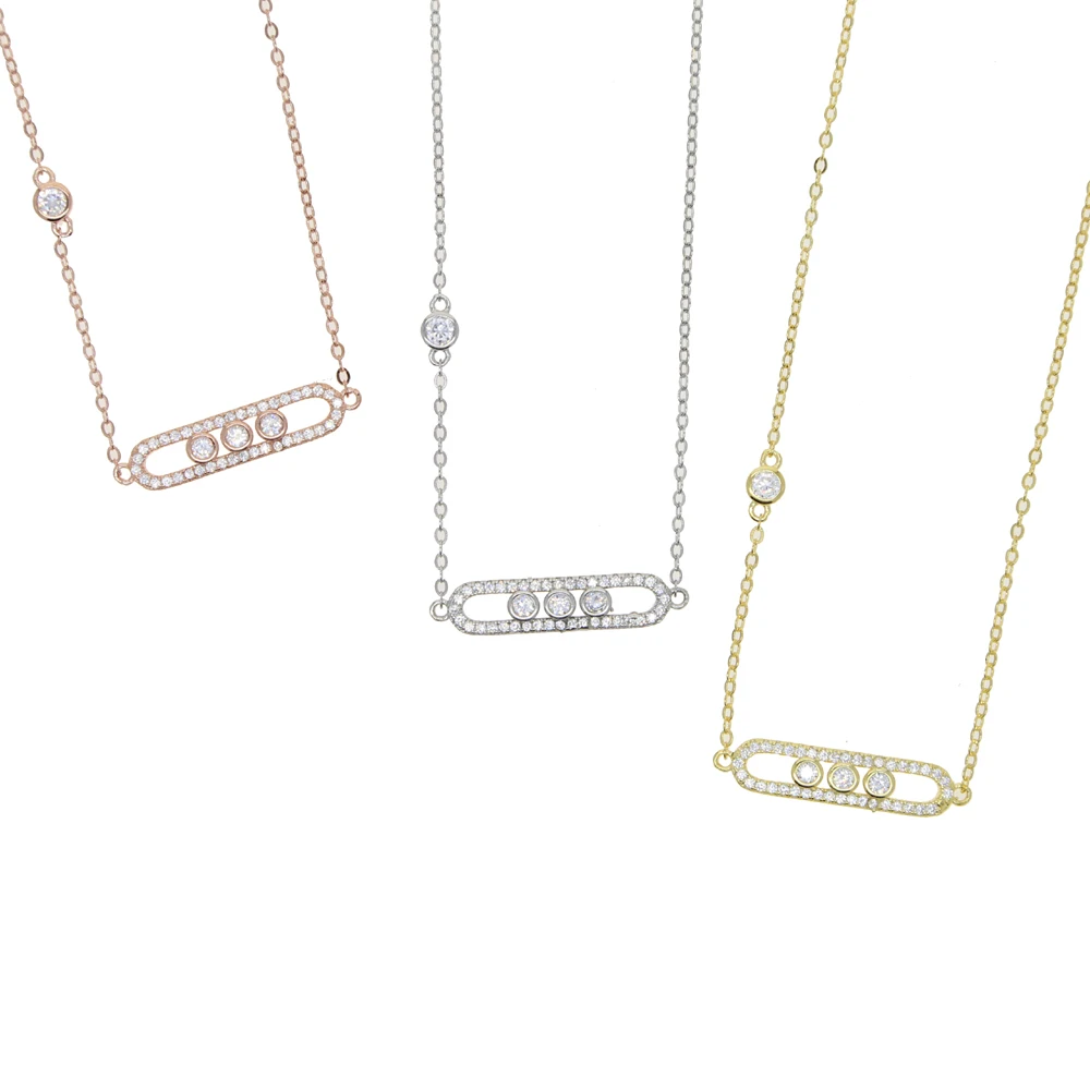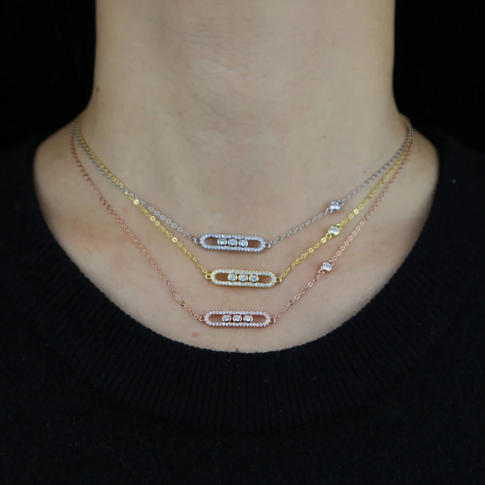 100% Стерлинговое Серебро 925 пробы модное женское ювелирное изделие золото розовое серебро 3 цвета микро проложить CZ бар ожерелье 925