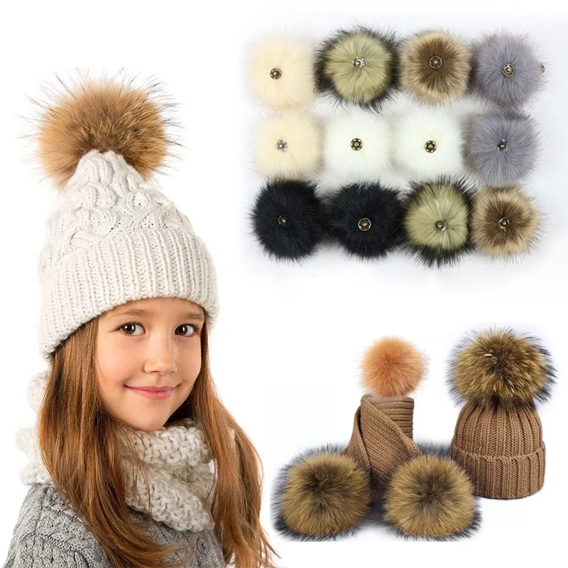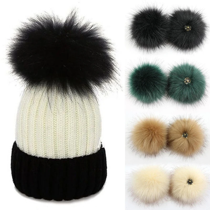 Пушистый помпон из искусственного меха для маленьких девочек, шарик 12 см с нажимной кнопкой, 2 шт., аксессуары для шапочка с помпонами, шапка-гвоздик