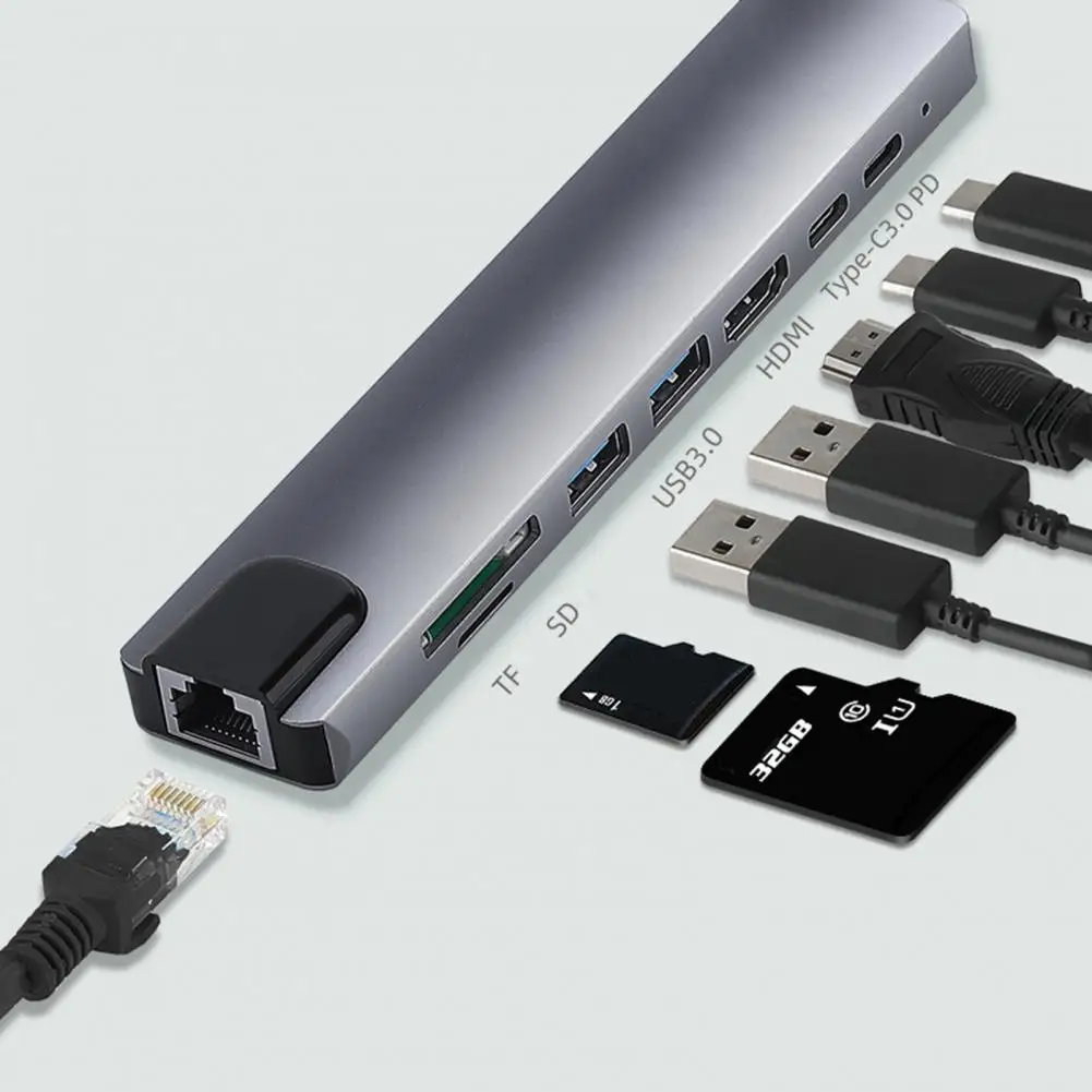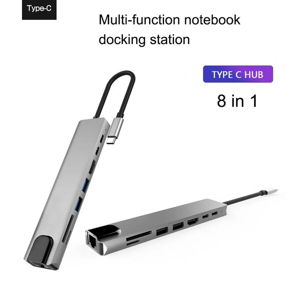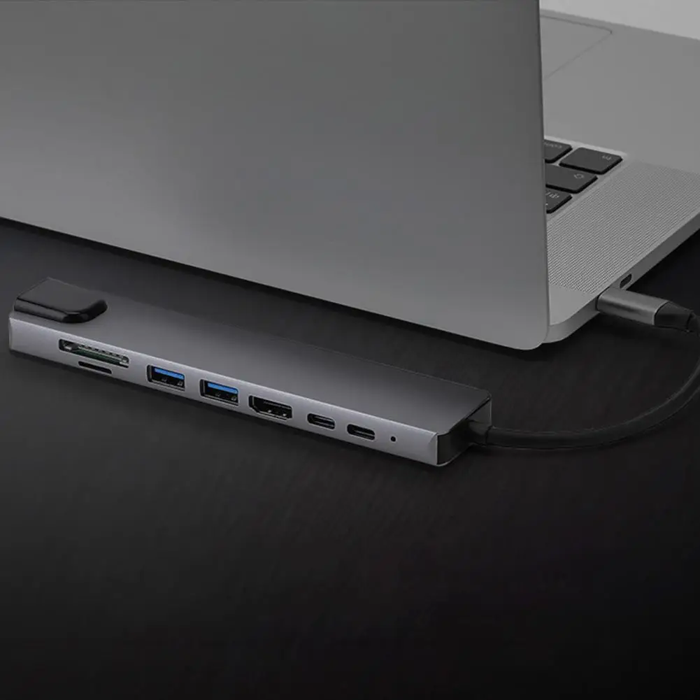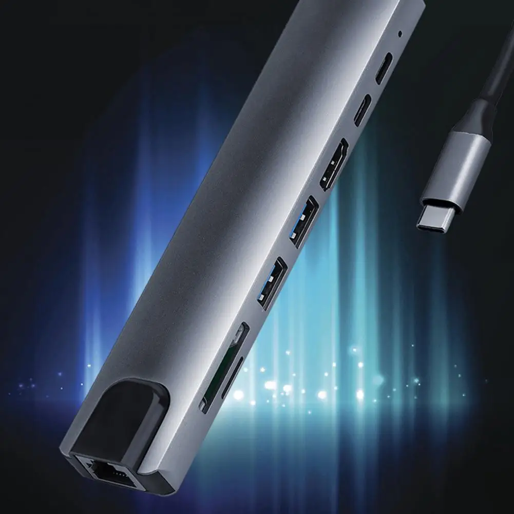 Характеристики: Он меньше, легче, удобен для переноски и не занимает места. Благодаря интерфейсу 8-в-1 он может удовлетворить ваши Многочисленные потребности в расширении. Хаб обладает хорошей теплоотдачей, очень прочной в использовании. Соответствует Спецификации интерфейса type-c и используется для-ной или обратной вставки. Этот преобразователь может поддерживать одновременно порт быстрой зарядки HDMI, USB и PD. Название товара: хаб Материал: алюминиевый сплав Количество интерфейсов: 8 в 1 Порт HDMI: 4K 30 Гц, обратная совместимость с 1080P, 720P и т. д. Порт USB: максимум до 480 м Порт зарядки PD: быстрая зарядка до 87 Вт Порт типа C: от 5 В, 500 мА до 900 мА Слот для карт Micro-SD/TF: USB 2,0 RJ45: 100M Особенности: хорошее рассеивание тепла, подключи и работай, 8 в 1, многофункциональный Размер: 15 см x 3 см x 1,3 см/5,91 дюйма x 1,18 дюйма x 0,51 дюйма (прибл.) Примечания: Из-за разницы в освещении и настройках экрана цвет изделия может немного отличаться от изображения. Возможны незначительные различия в размерах из-за различий в измерениях вручную. Посылка входит: 1 х хаб