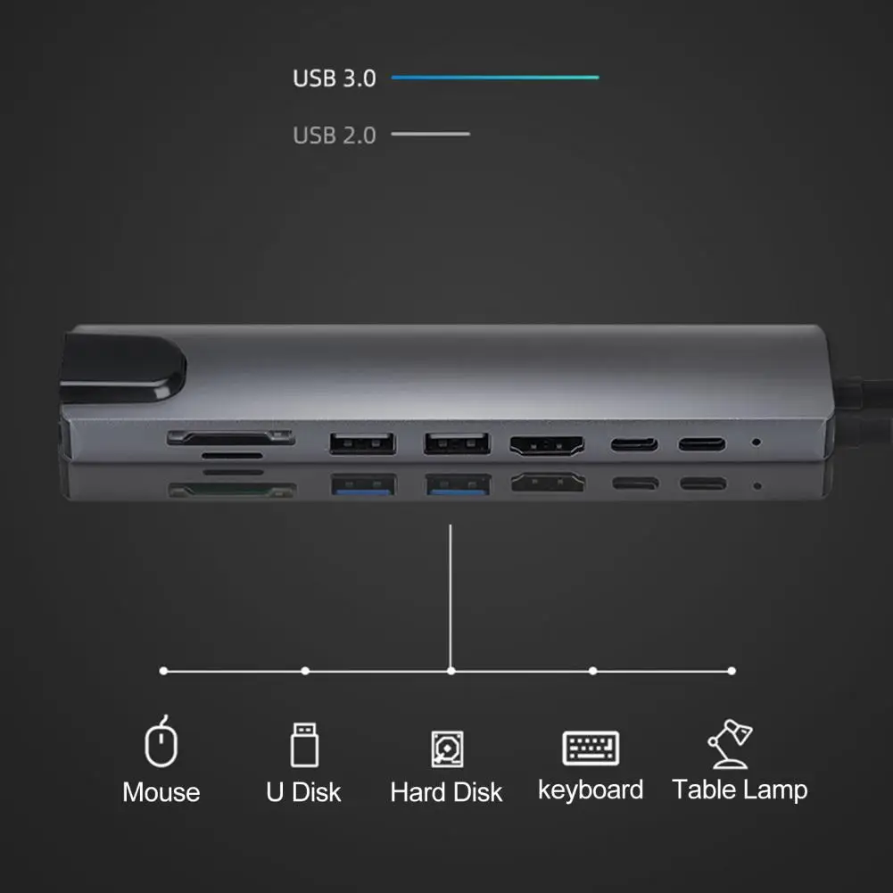 USB-концентратор 8 в 1 с USB Type-C на PD, для быстрой зарядки Micro-SDTF-карт