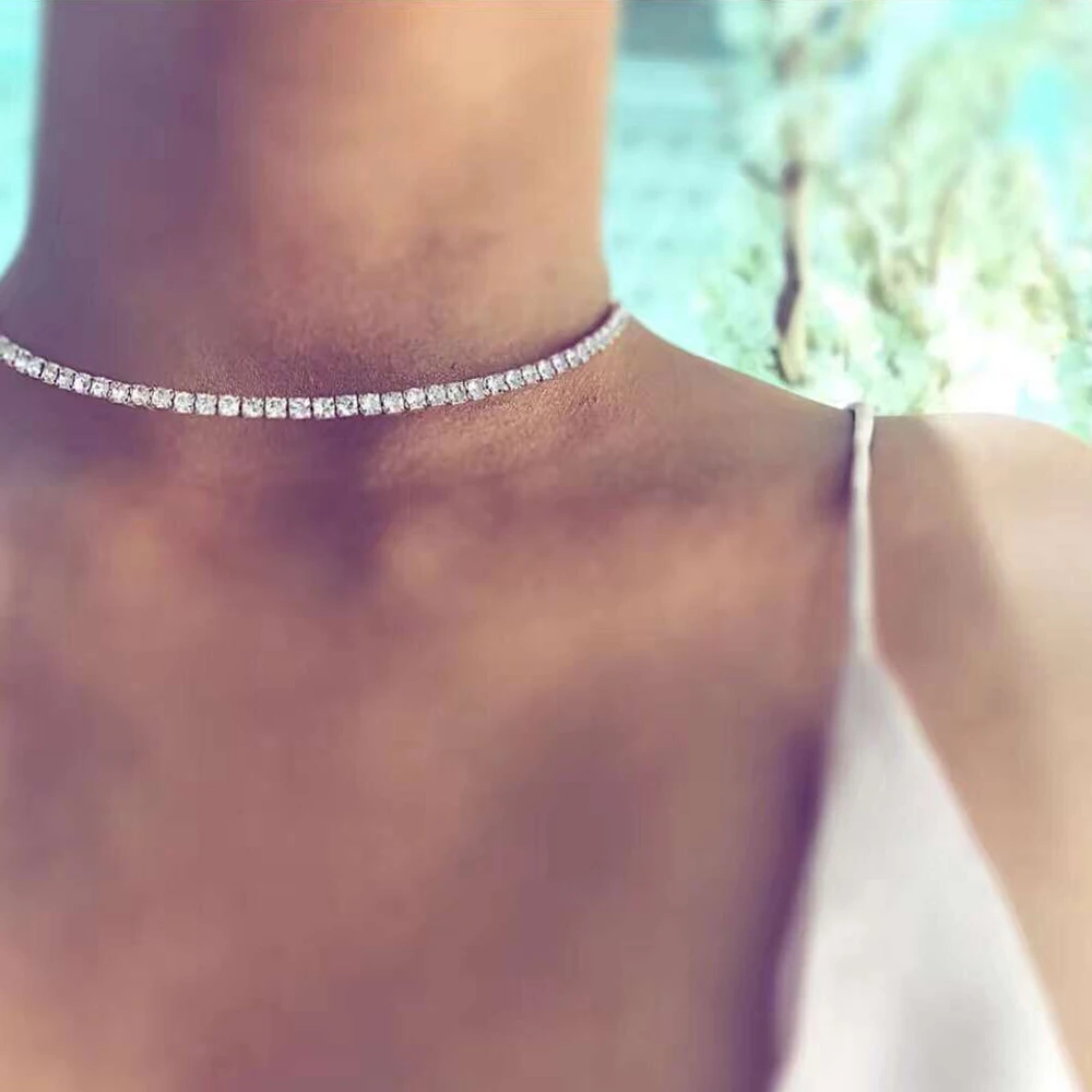 Цепочка Женская, серебристая, 1 ряд, колье со стразами, ювелирные изделия с чокерами