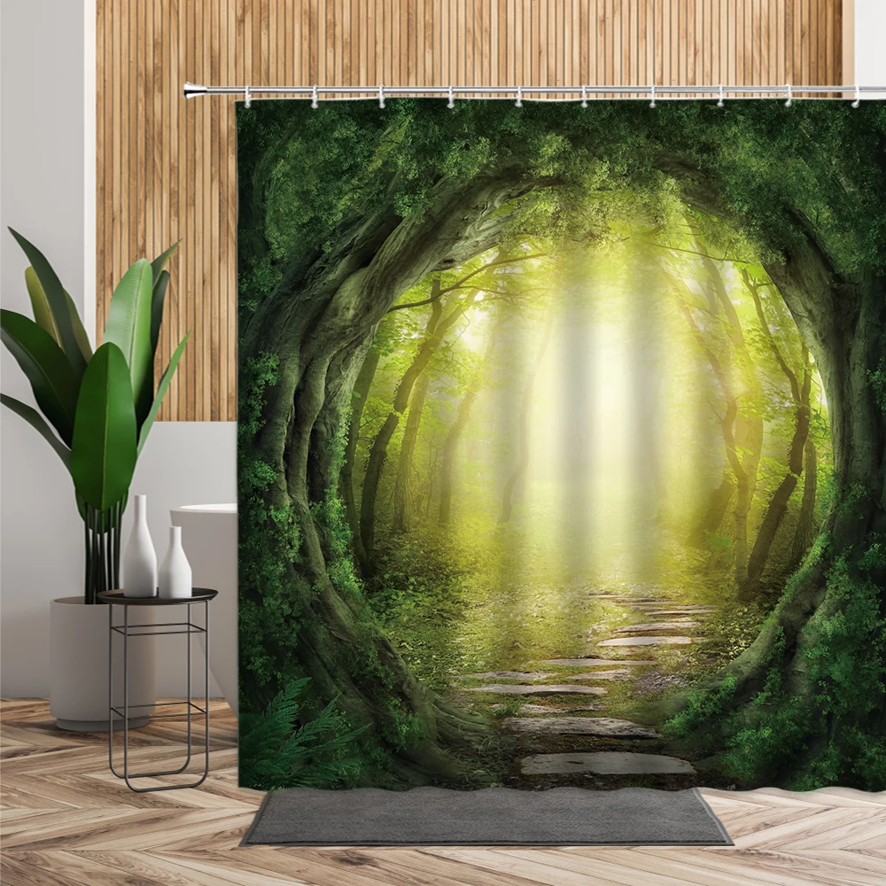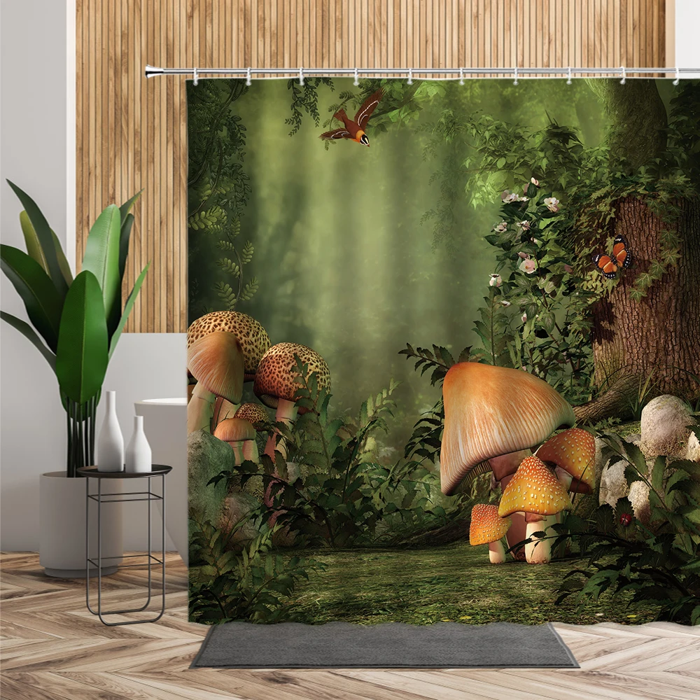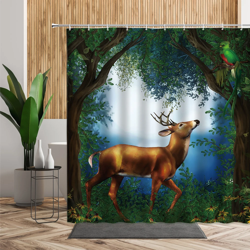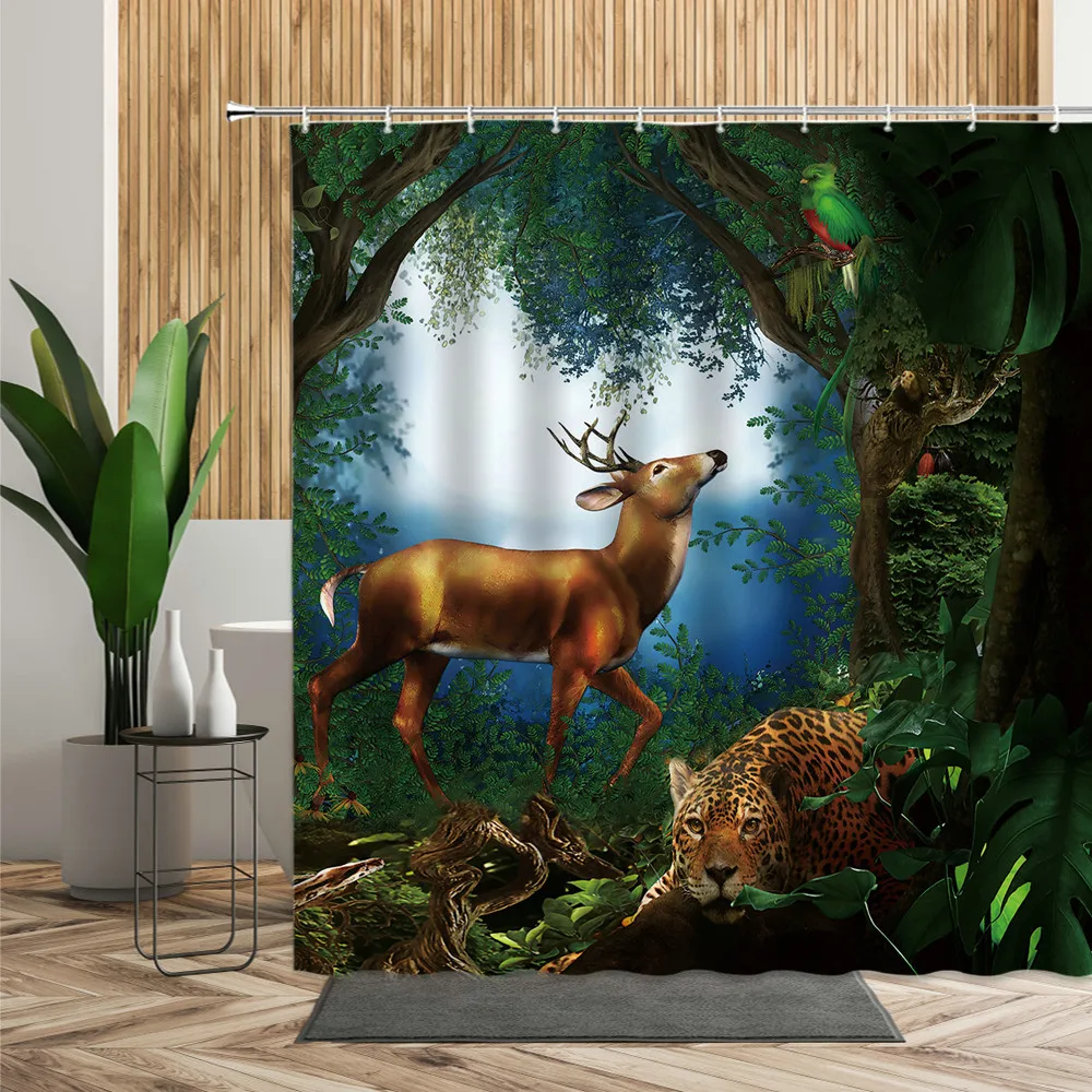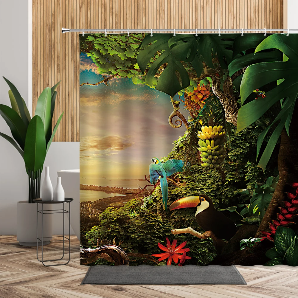 Занавеска для душа с изображением джунглей, леопард, попугай, тукан, бананы, птицы, тропические растения, цветы, занавеска для ванны, ткань 3D, декор для ванной комнаты