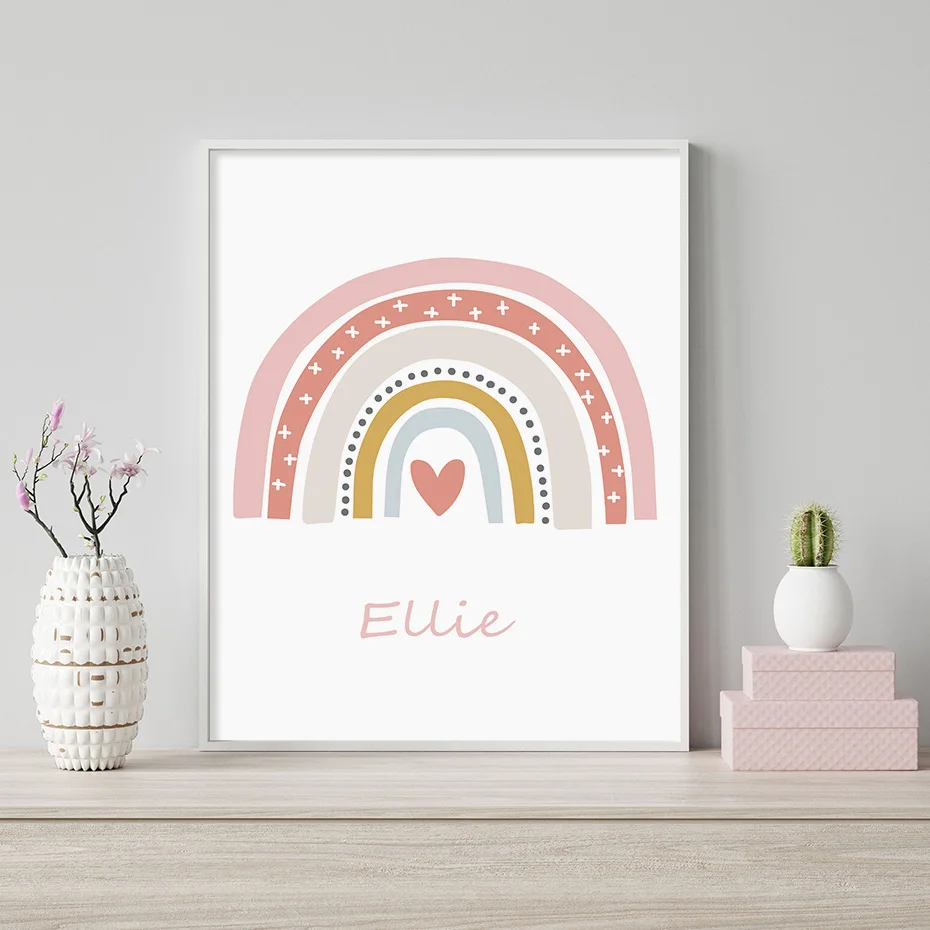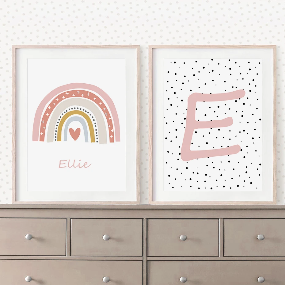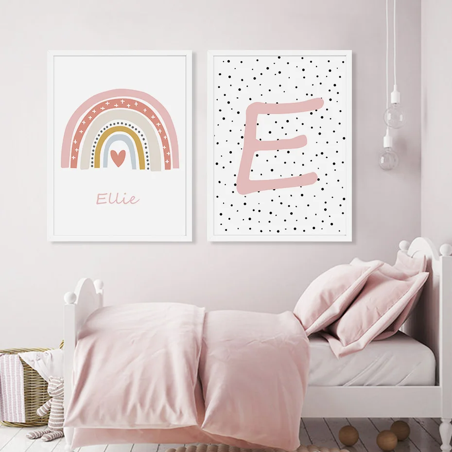 Розовая Радуга с именем на заказ инициалом буквами Детские картины на холсте для девочек плакаты настенные картины для спальни домашний Настенный декор