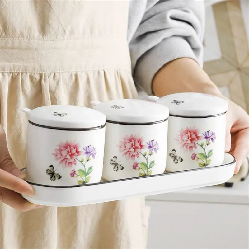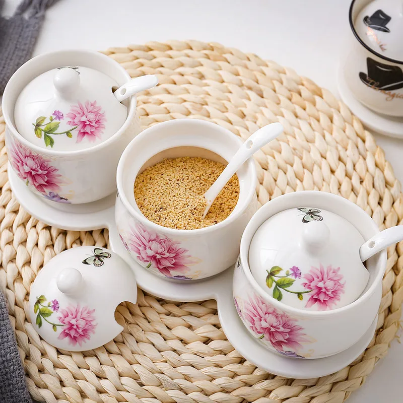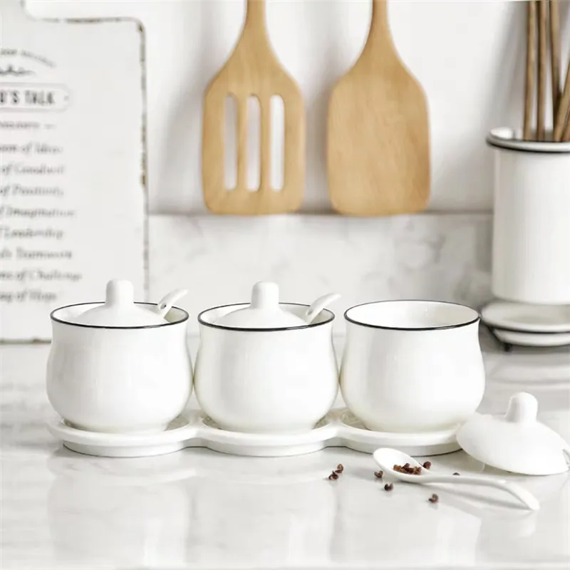 Европейский Керамика Приправа бутылки Кухня Пособия по кулинарии инструменты, емкости для хранения специй с ложкой крышкой и лоток контейнер для приправы сахар соль сахарница