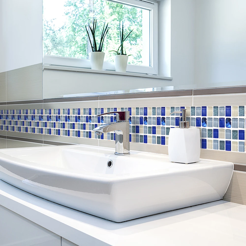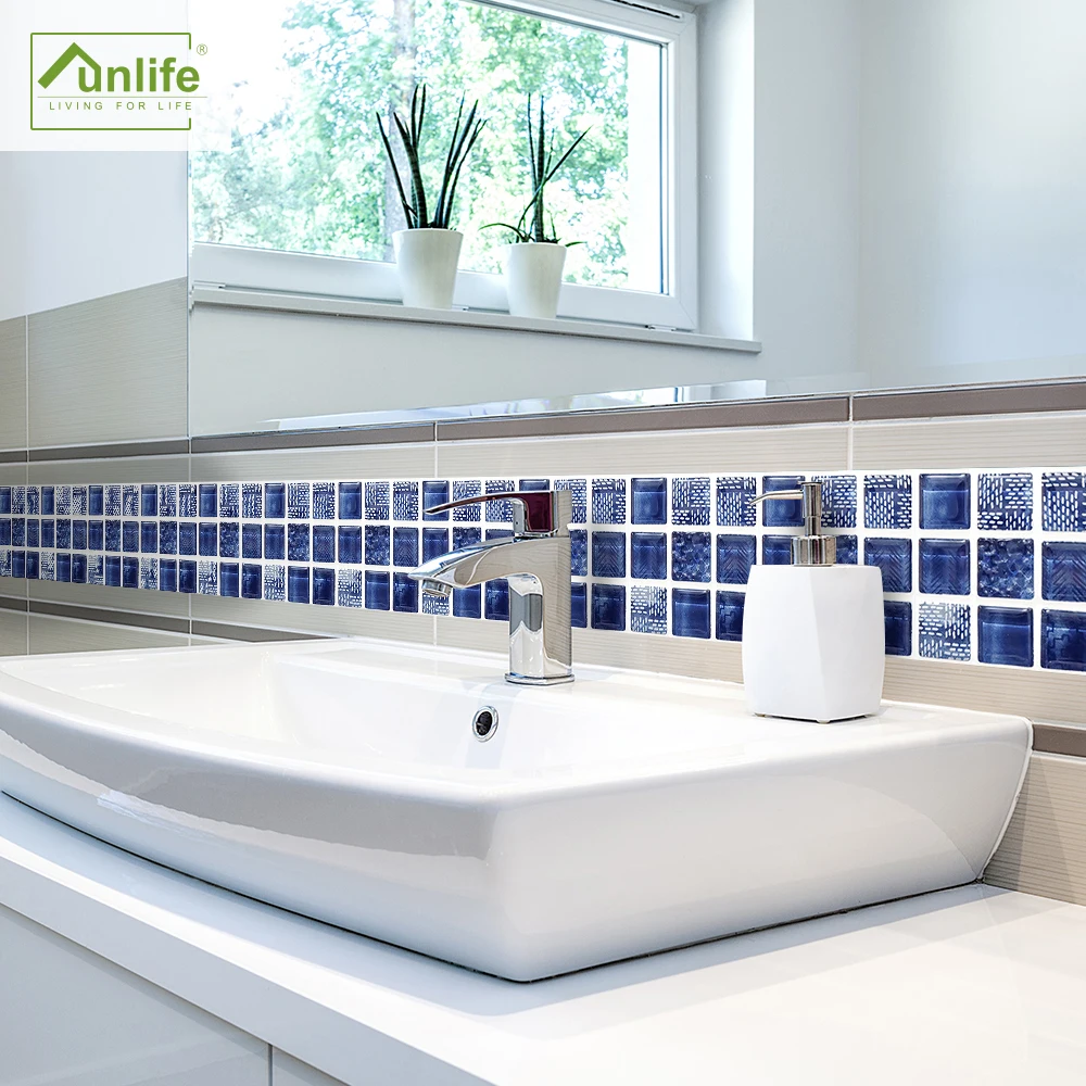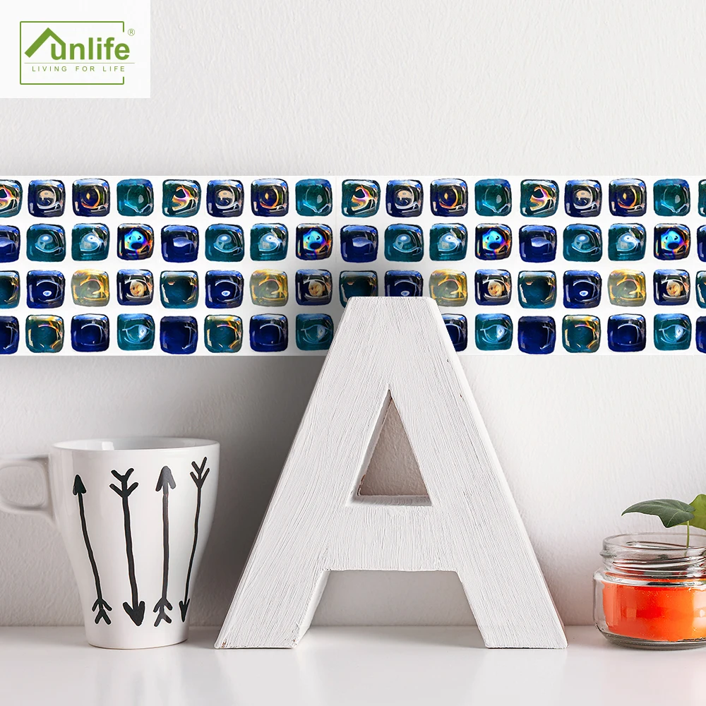 FunlifeСиние мозаичные наклейки на стену, самоклеящиеся декоративны...