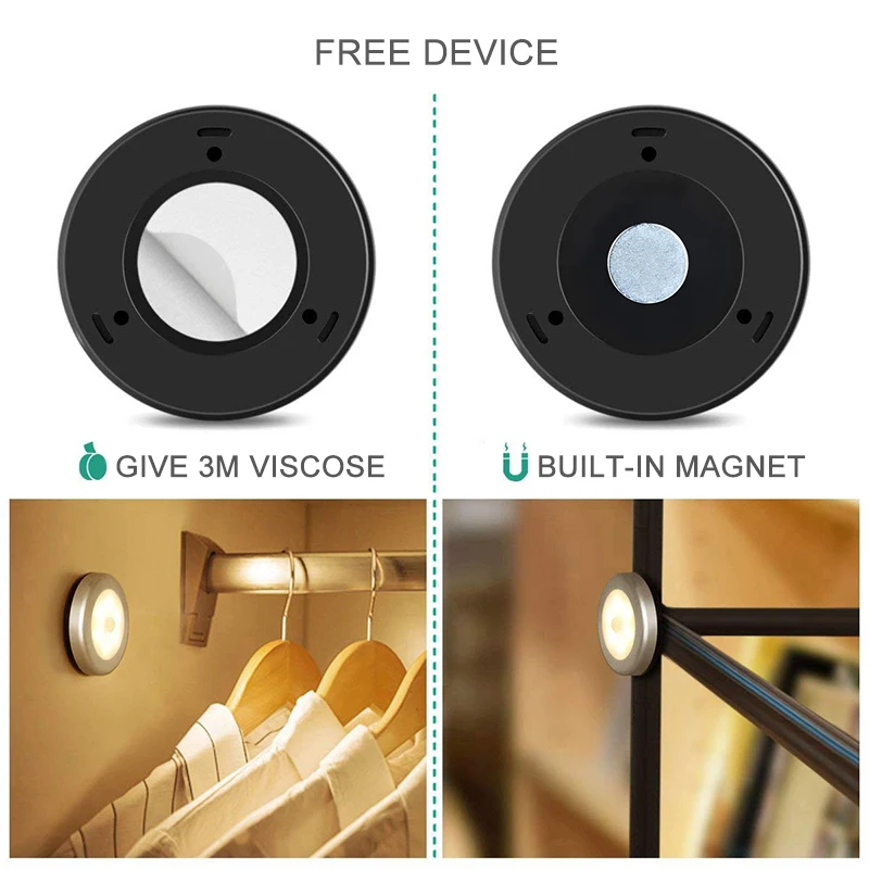 Светодиодный светильник в ночное время обеспечивает светильник, который вам больше всего нужен. Характеристики: 6 светодиодный светильник s, обеспечивающий четкий яркий выход, подходящий для использования в любом месте, требуется дополнительный светильник, такой как шкафы, шкафы, ящики, кухни, ванные комнаты, спальни, коридоры, гаражи и многое другое! Технология датчика движения PIR включит светильник при обнаружении движения и автоматически отключается через 15 - 30 секунд бездействия. Магнитная подложка позволяет использовать светильник на магнитных поверхностях, но также может быть прикреплен к большинству других поверхностей с помощью наклеек, которые включены.