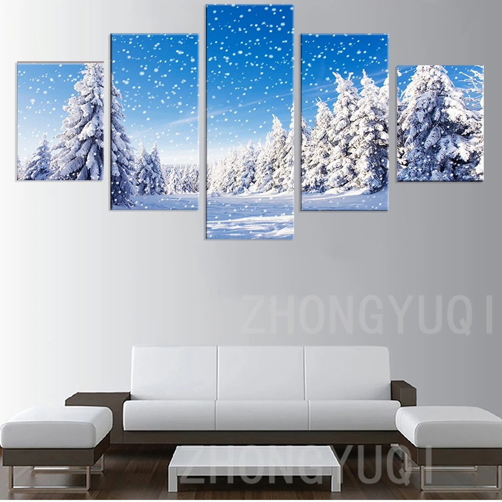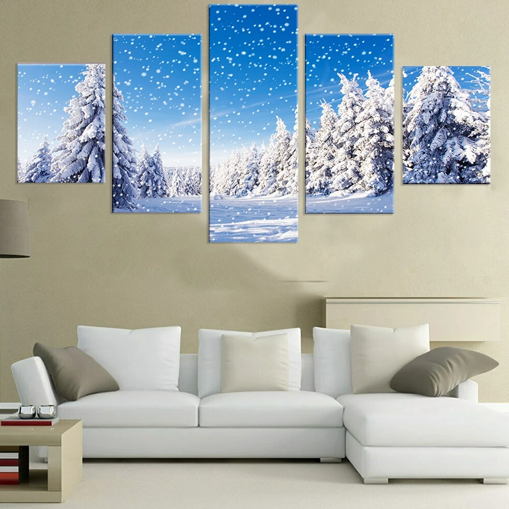 Картина на холсте, настенное искусство с рамкой, 5 шт., картины снежного пейзажа, постер для домашнего декора, картины