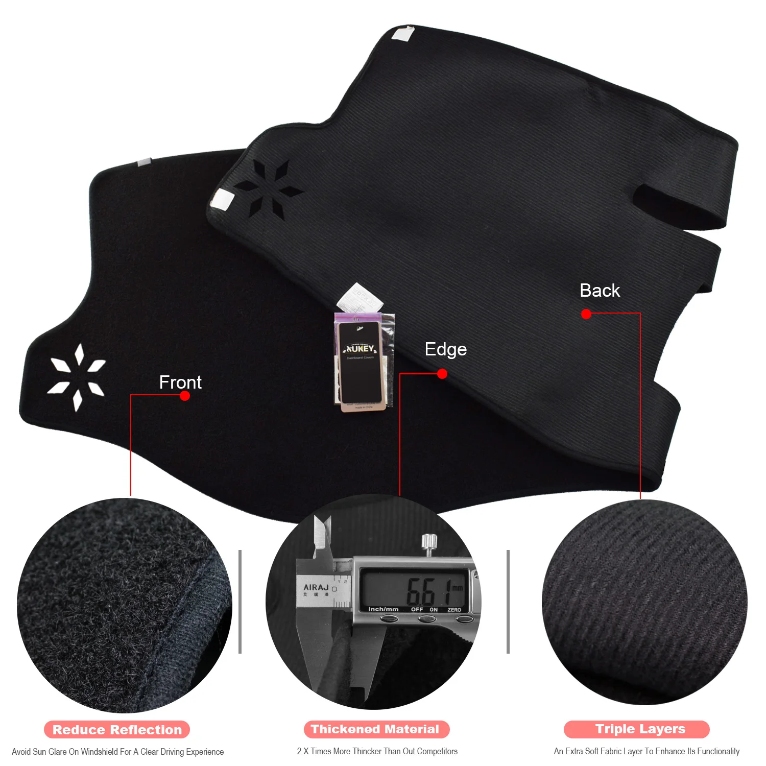 Простая установкаКонтуры для приборной панелиНе садится, не выцветает или не искажаетЗащищает приборную панель от ультрафиолетовых лучейУстраняет растрескиваниеУменьшает бликиУФ стабилизированная Высококачественная полиэфирная Автоматическая тканьДышит, чтобы рассеивать теплоБольшие вентиляционные вырезы, чтобы не ограничивать воздушный поток тумана