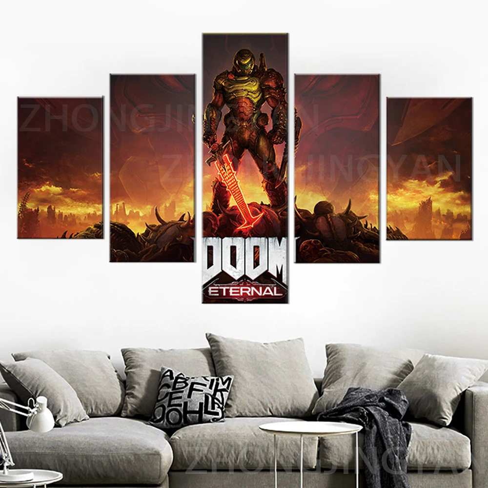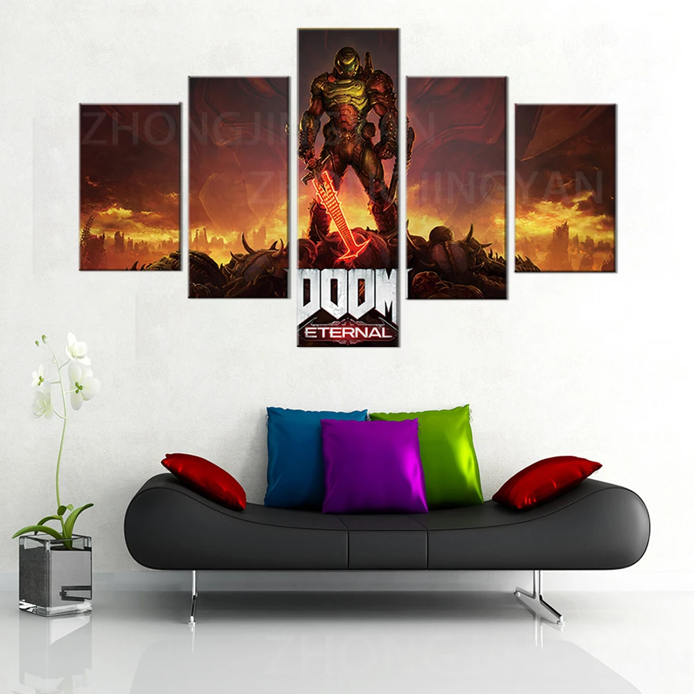 5 панелей, HD постер игры, вечная картина маслом DOOM, Настенная картина для гостиной, Современный домашний декор для картины, настенное искусство fram