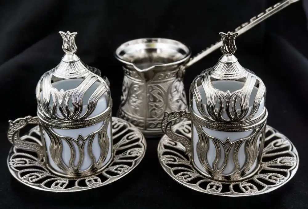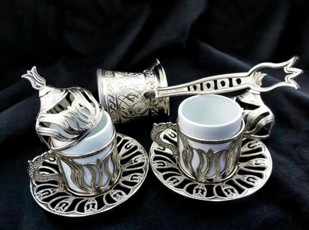 Набор медных чашка для кофе по-турецки для эспрессо с талисманом, турецкие тюльпаны