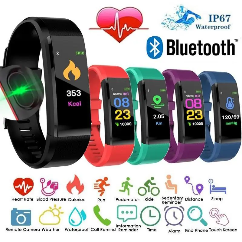 115 Plus Bluetooth Смарт-часы с пульсометром смарт-Браслет фитнес-трекер Браслет IP65 водонепроницаемые наручные часы для мужчин и женщин
