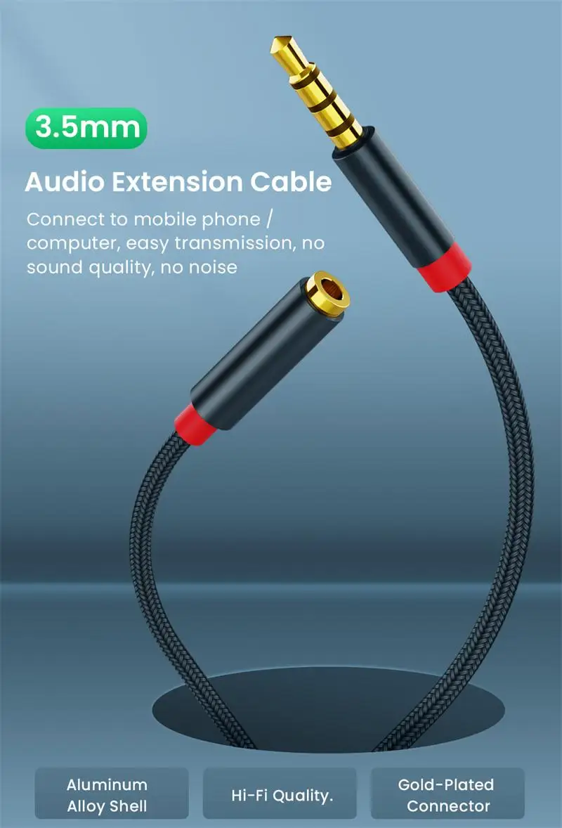 AUX-удлинитель 3,5 мм, аудиоразветвитель для наушников, кабель штыр...