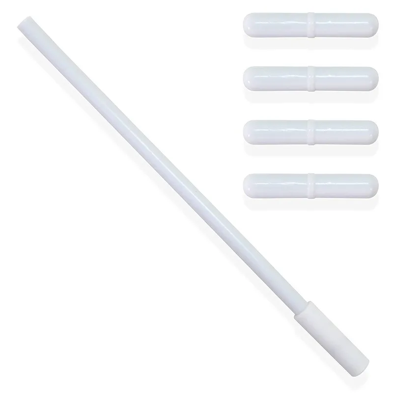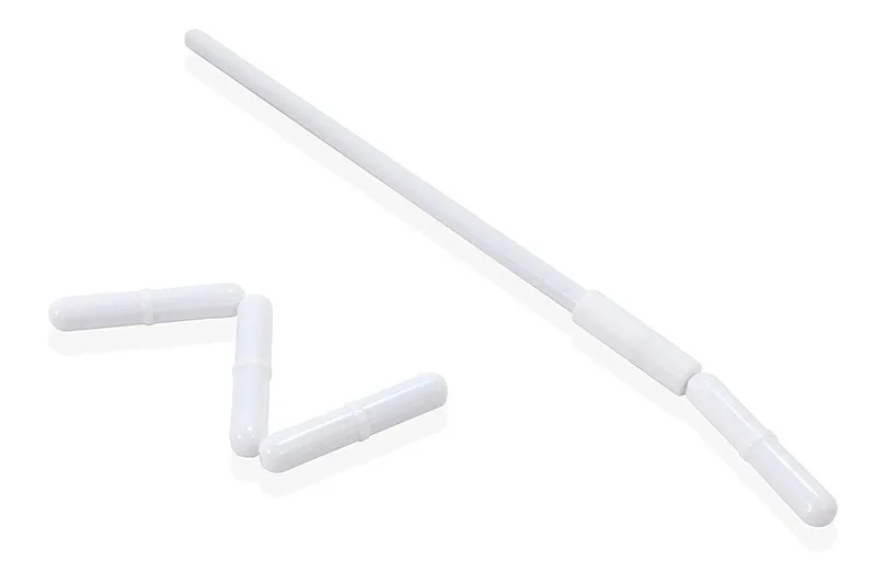 Блоха для перемешивания изготовлена из ПТФЭ, более известной как тефлон, который является синтетическим полимером, содержащим углерод и фтор. Тефлон хорошо известен своей антипригарностью. Высокая коррозионная стойкость, а также не реактивная.