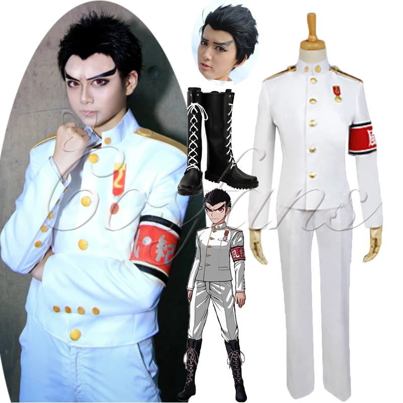 Костюмы для косплея Dangan Ronpa Kiyotaka Ishimaru, мужская униформа, пальто, штаны, полный комплект, черные парики, обувь Cos, одежда