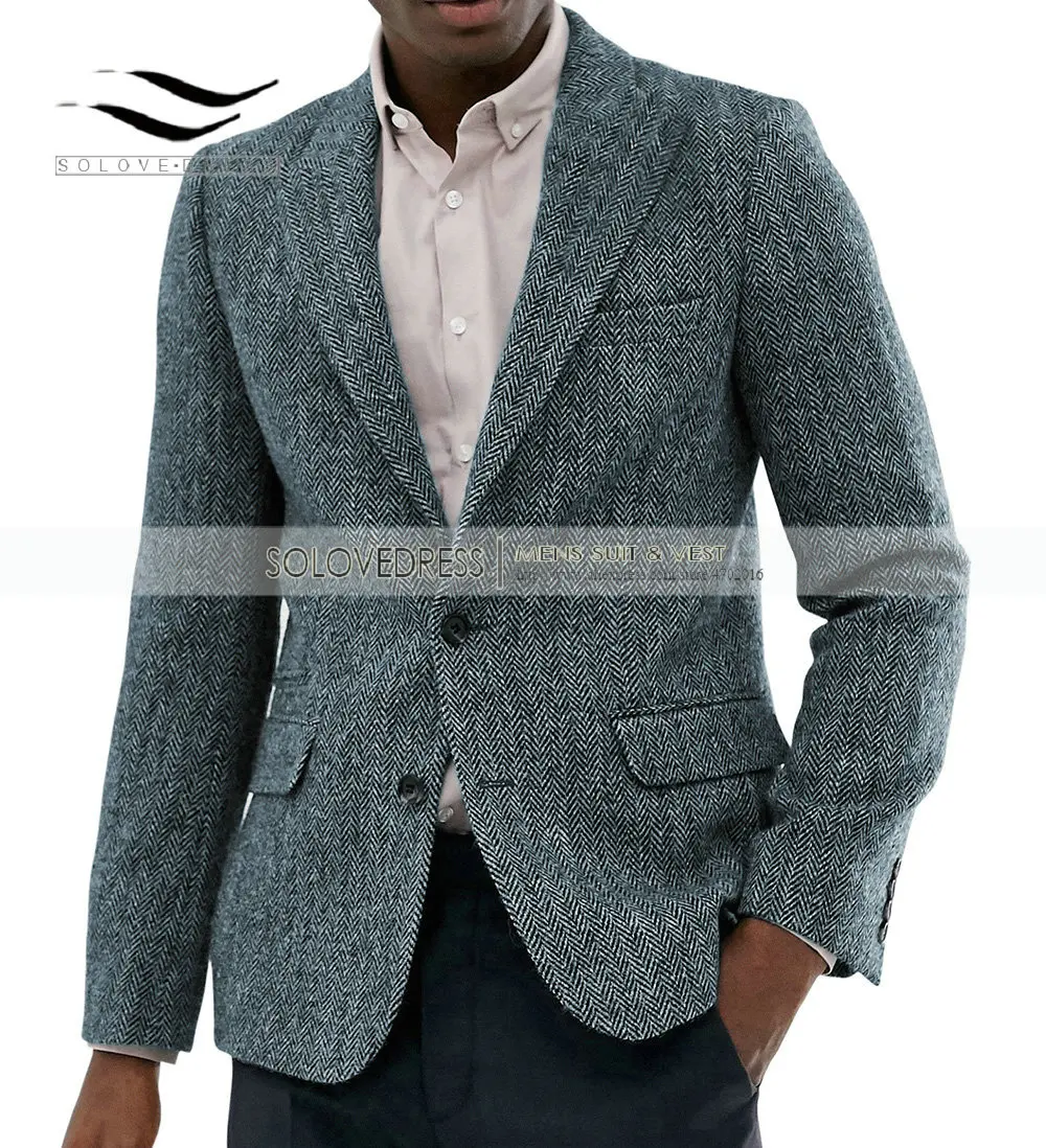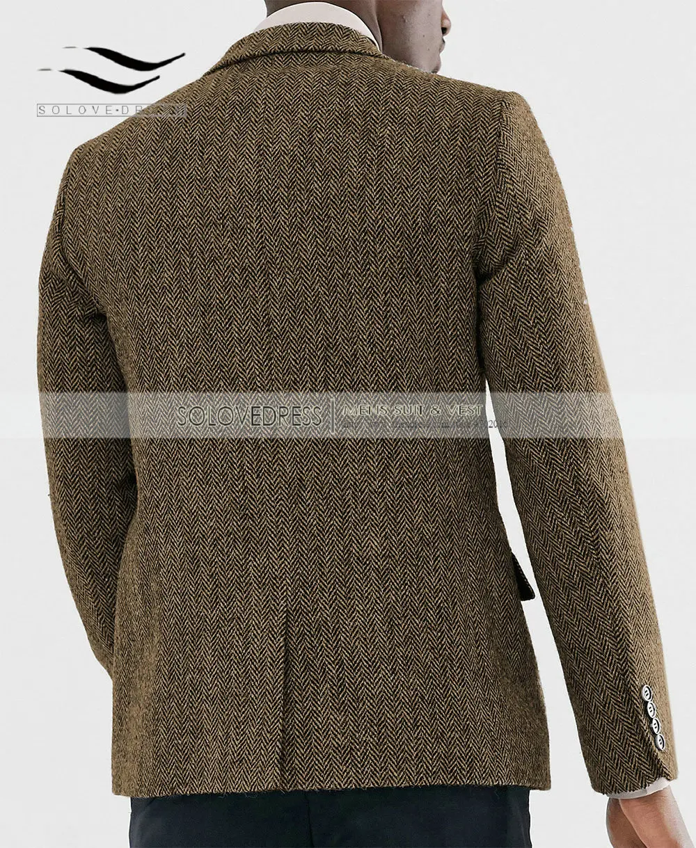 Официальный Мужской шерстяной коричневый пиджак для выпускного вечера зеленые смокинги цельный пиджак с узором в елочку для свадебных женихов