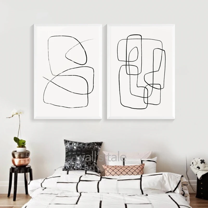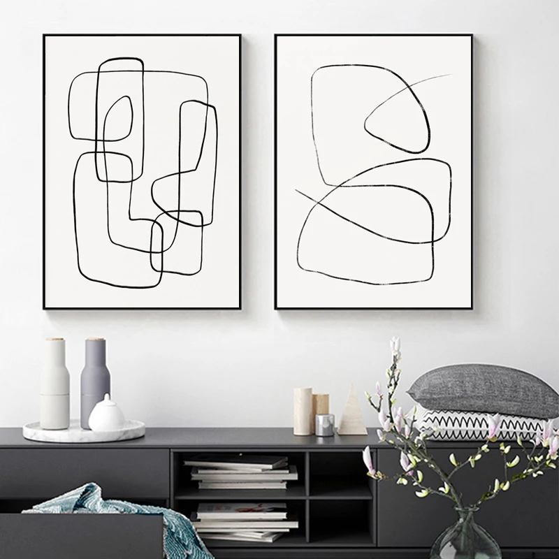 Черно-белый абстрактный рисунок на линии, художественные принты, современный минималистичный плакат, холст, живопись, настенные картины, гостиная, домашний декор
