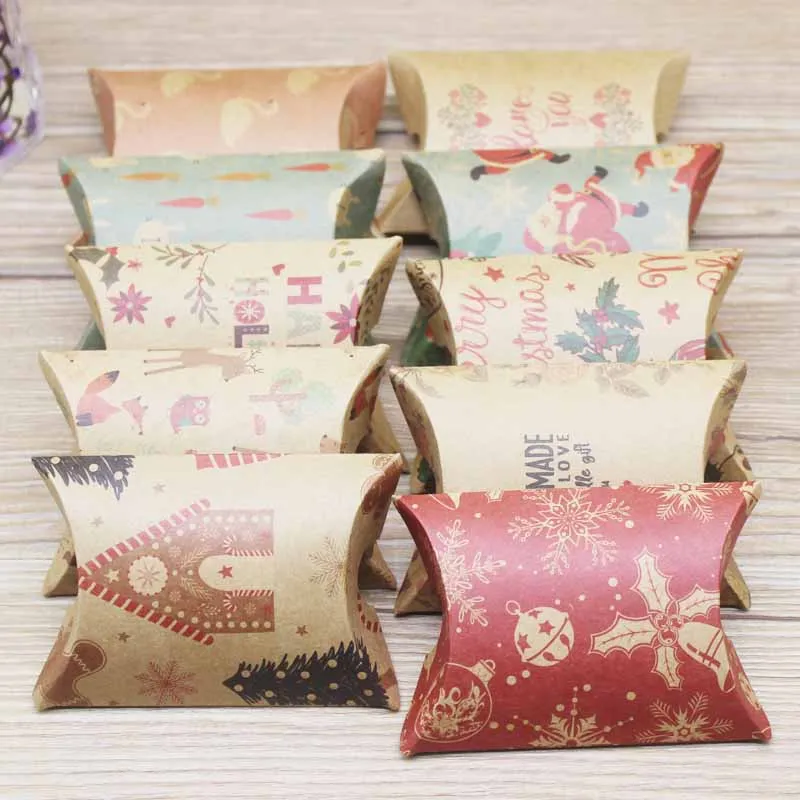 10 шт. Рождественская коробка из крафт-бумаги в форме подушки короб...