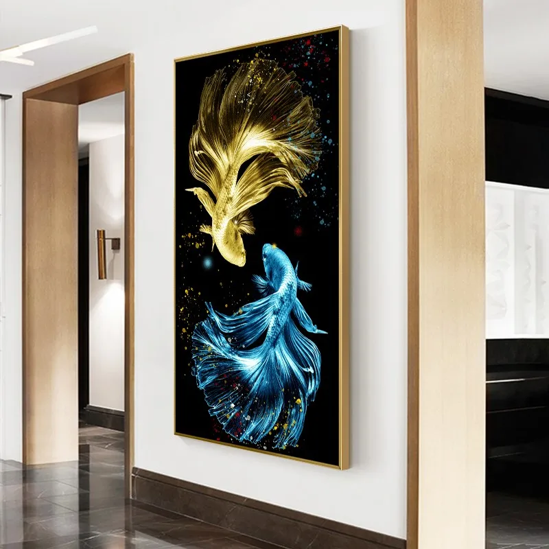 Вышивка крестиком 50 х90 см, Набор для вышивки крестиком с принтом 100%, хлопковая и шелковая нить, Синяя Рыбка