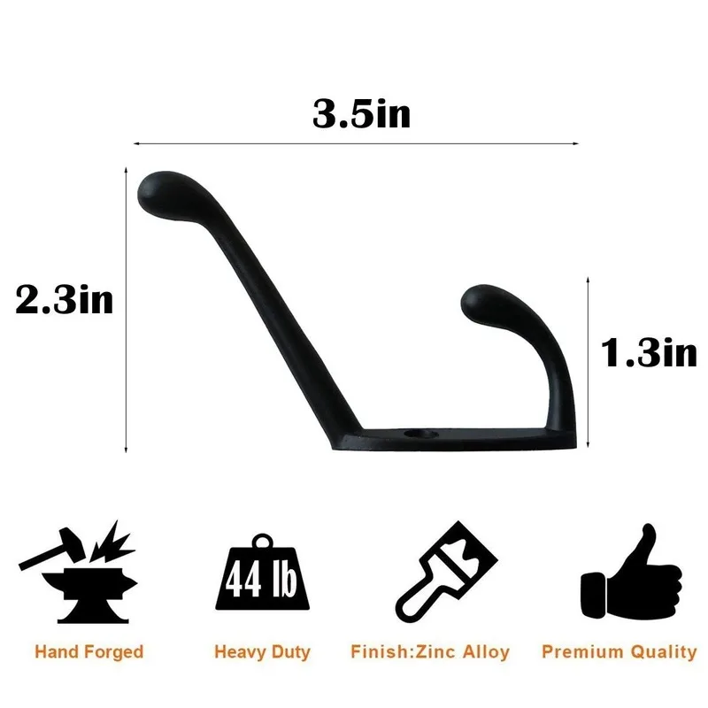 10 упаковок сверхмощных крючков для пальто, настенное крепление для фурнитуры шляпы, ретро вешалка для пальто с двумя зубцами с 20 винтами черного цвета