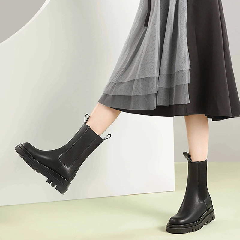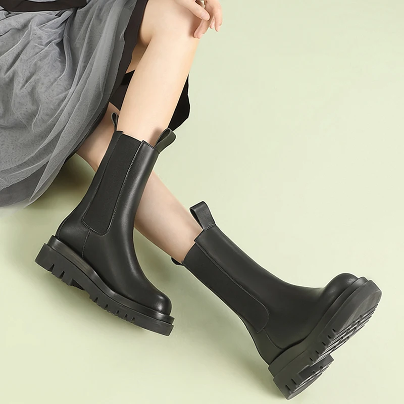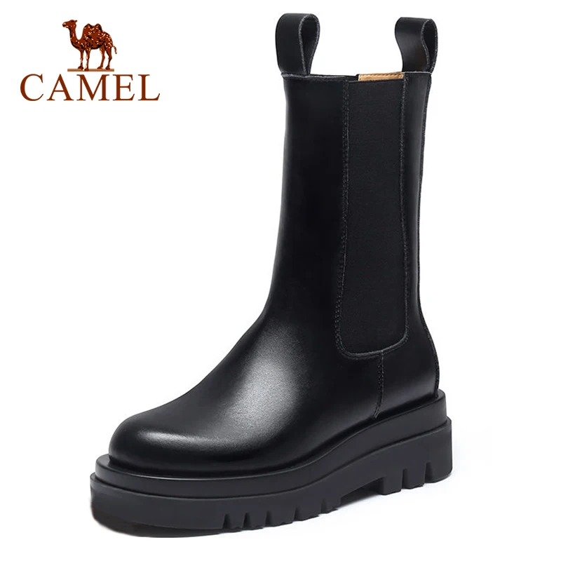 Женские сапоги до середины икры CAMEL, зимние короткие сапоги на толстой подошве, с плюшевой подкладкой, короткие ботинки челси, женская обувь, новинка 2020