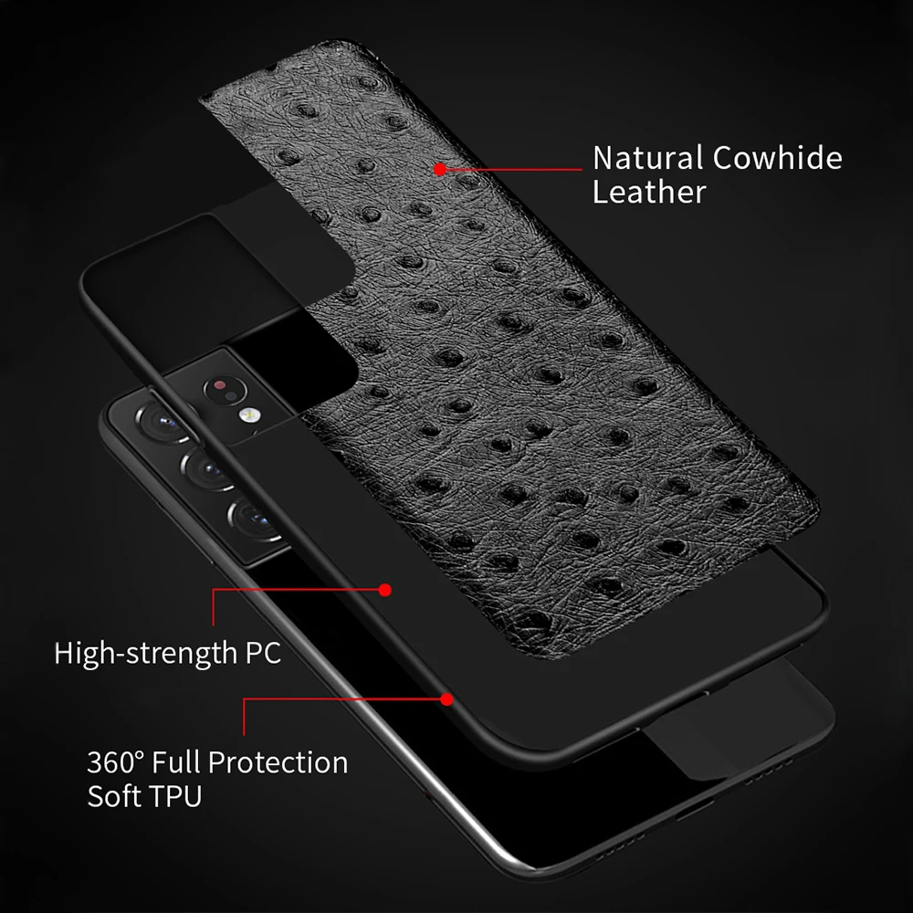 Чехол из натуральной кожи с текстурой страуса для Samsung Galaxy S21 S22 Ultra S20 S21 FE S9 S10 Plus Note 20 10 A52 A51 A71 A52S A32 S20 FE S20 Plus S20 Ultra S21 Ultra S9 S10 S21 Plus Note 20 Ultra 10 Plus A12 A50
