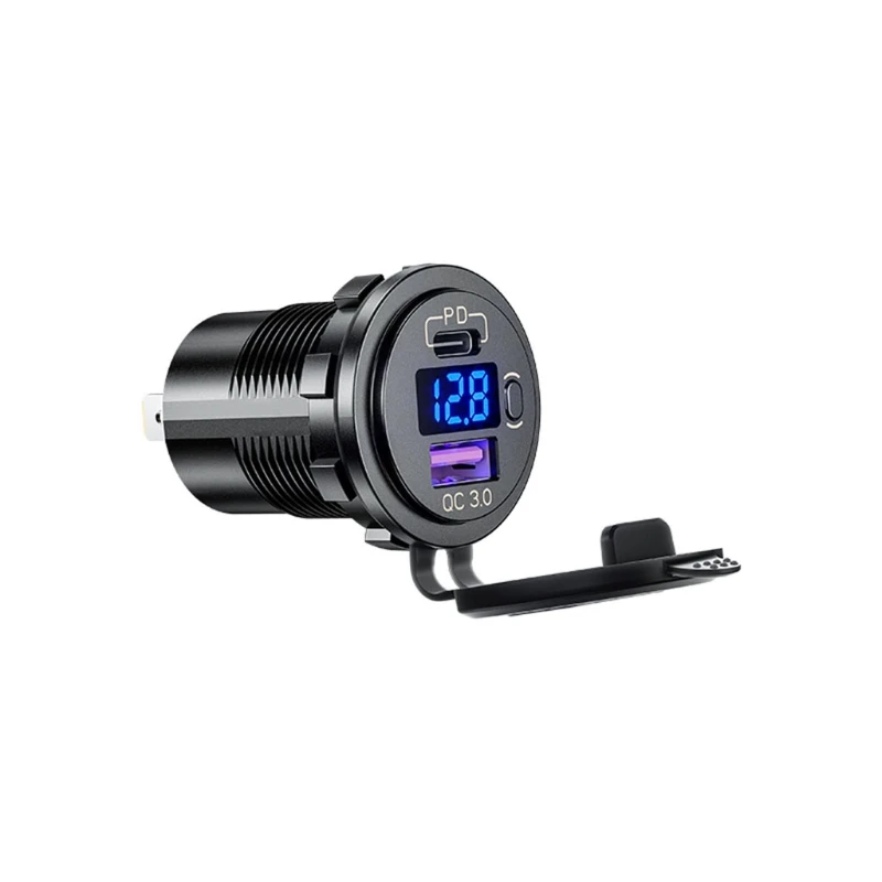 Водонепроницаемый Тип C PD QC3.0 USB 12V автомобильный адаптер для быстрого автомобильного Зарядное устройство с светодиодный вольтметр вклвыкл переключатель кабель для грузовик, мотоциклы Mari