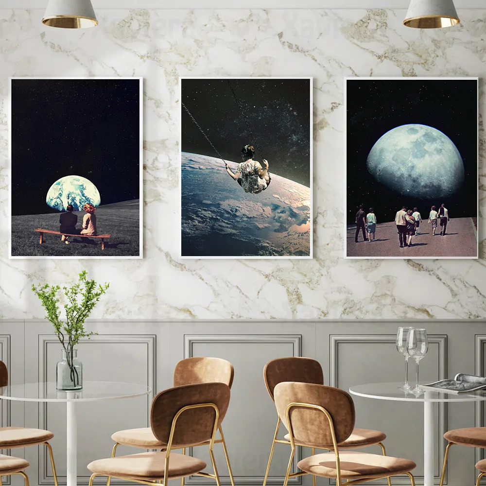 Абстрактная Вселенная, земля, луна, звездное искусство, холст, живопись, сюрреализм, галактика, космос, ретро постер, картина, украшение для дома, гостиной