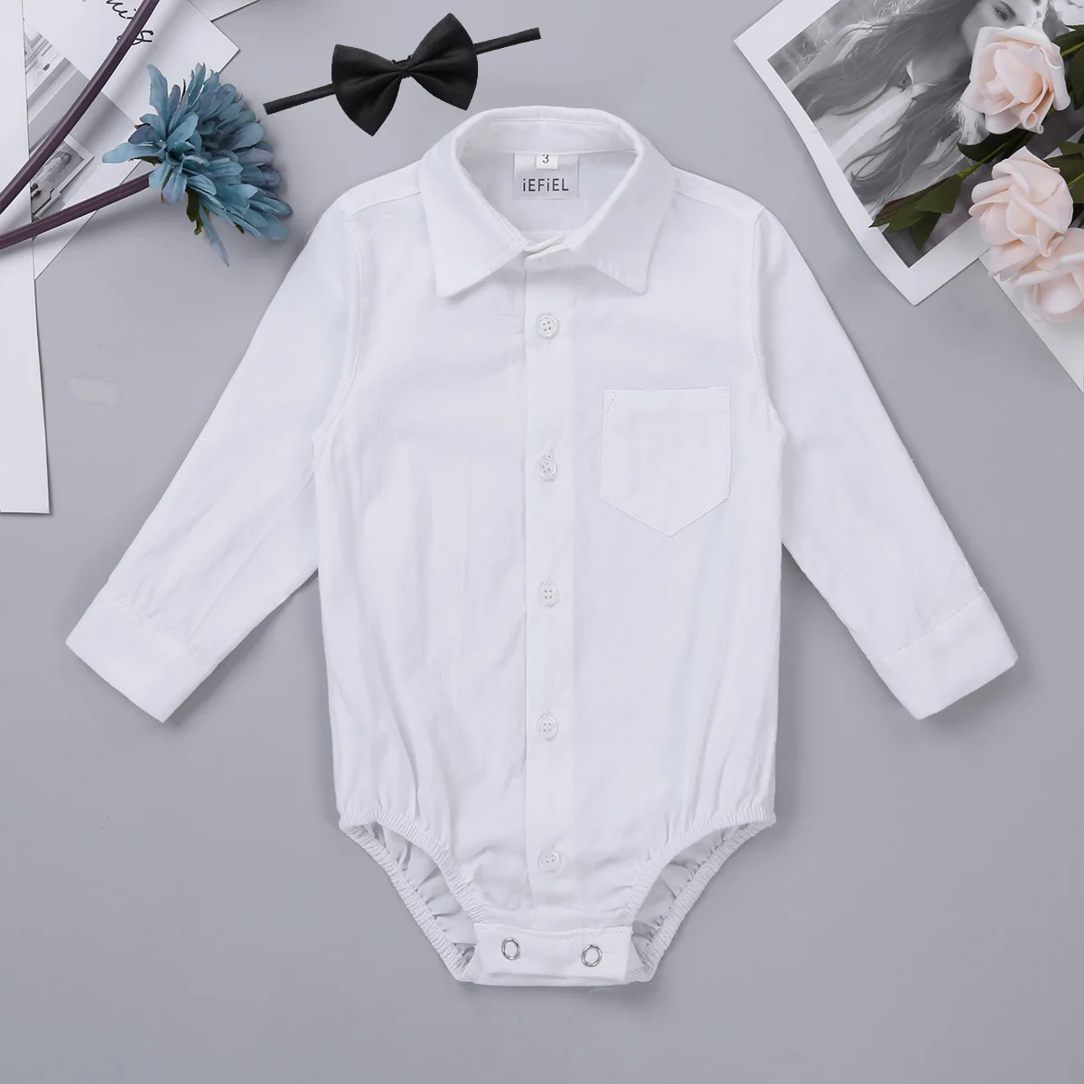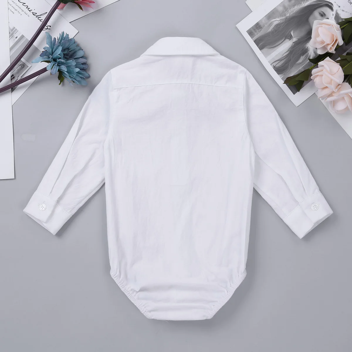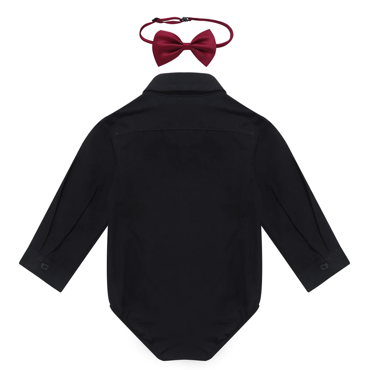 Комбинезон изготовлен из полиэстера и хлопка, ручная стирка, машинная стирка. Таблица размеров означает возраст для маленьких мальчиков, но они предназначены только для общего руководства. Длинные рукава, дизайн с лацканами, один нагрудный карман, пуговицы спереди и манжеты для легкой одевания. Эластичные отверстия для ног, застежки внизу для легкой смены подгузников. Регулируемый черный галстук-бабочка с застежкой. Подходит для дня рождения, вечерние, фотографии, торжеств, свадьбы, праздника, повседневной носки и т. д.