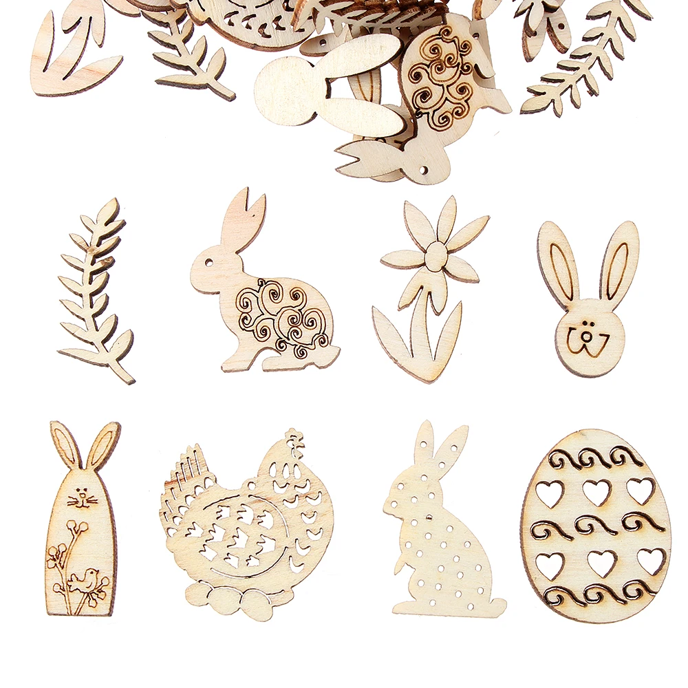 50 шт. пасхальные яйца кролика, деревянное ремесло, пасхальные украшения, деревянные ломтики, деревянные чипсы сделай сам, подвесные украшения, натуральная ручная работа