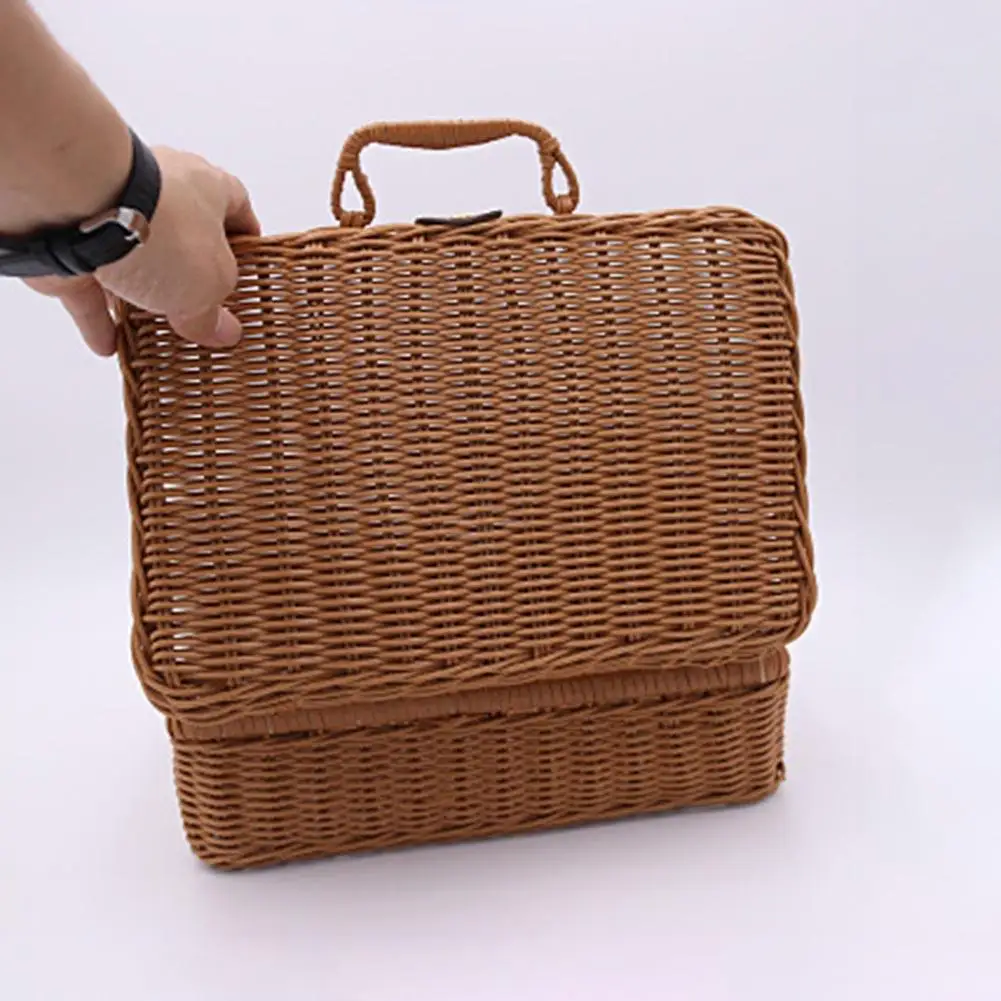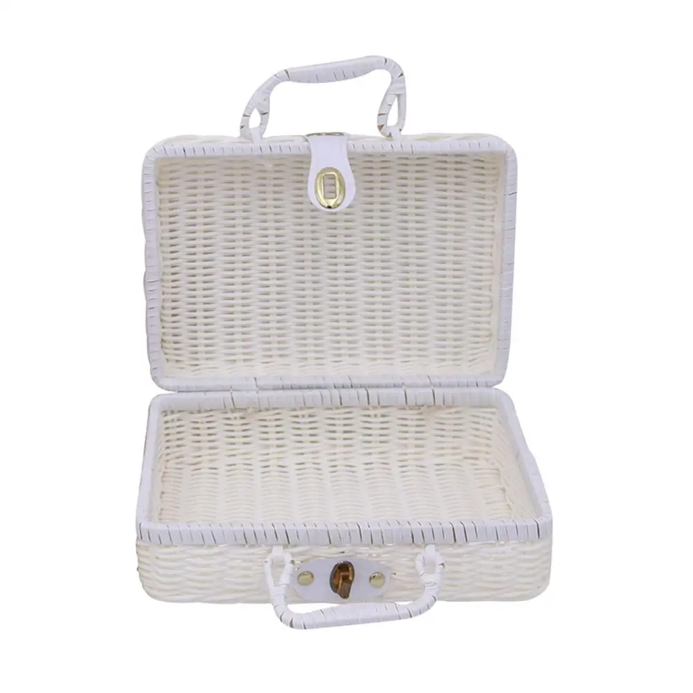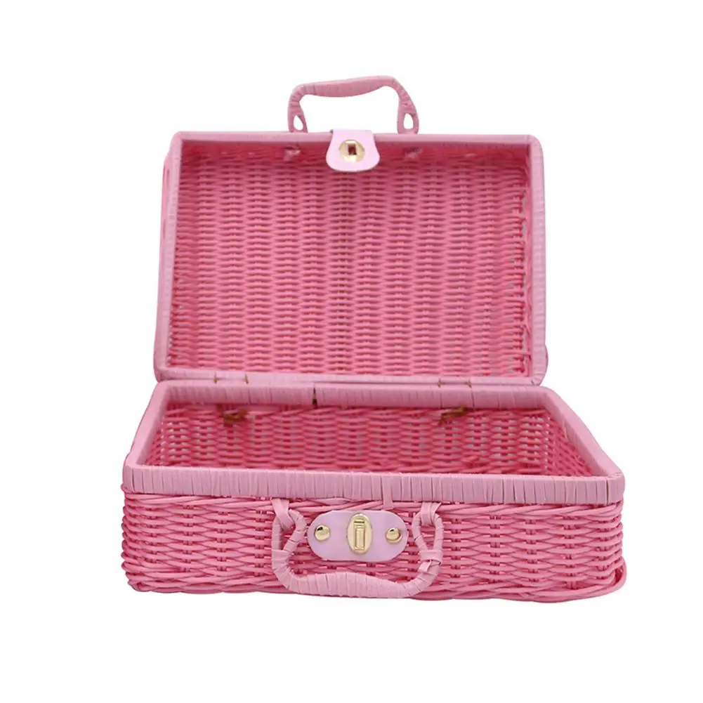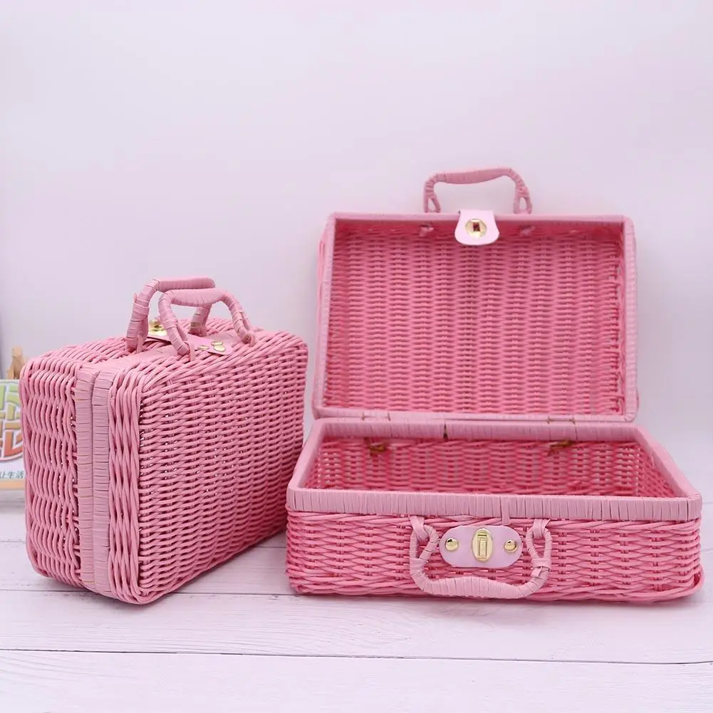 Винтажный портативный Плетеный Чехол ручной работы из ротанга для хранения макияжа, путешествий, пикника, корзины для багажа, чехол для костюма, органайзер для всякой всячины