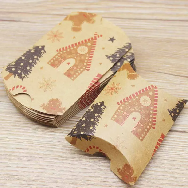 10 шт. Рождественская коробка из крафт-бумаги в форме подушки короб...