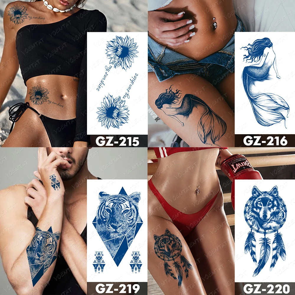 Революционный продукт, сравнимый с настоящими татуировками Принцип окрашивания татуировки соком: Полученный от гардении жасминоидов, растения с более чем 1600 лет истории в Китае, и безопасный пигмент естественный Принцип окрашивания: После контакта с кожей окисленно активированный пигмент появится синим и черным, что также является цветом настоящей татуировки. Не бойтесь втирания, это более реалистично, татуировка на две недели Новые материалы, отличные цвета, более реальные Характеристики: Количество: 1 шт. Размер: 11x18 см 4,3x7 дюймов Примечание: Из-за различных настроек монитора и освещения цвет может немного отличаться от реального товара. Срок службы около 7-15 дней 300 стилей татуировок сока, нажмите на картинку ниже, чтобы увидеть больше стилей продукта