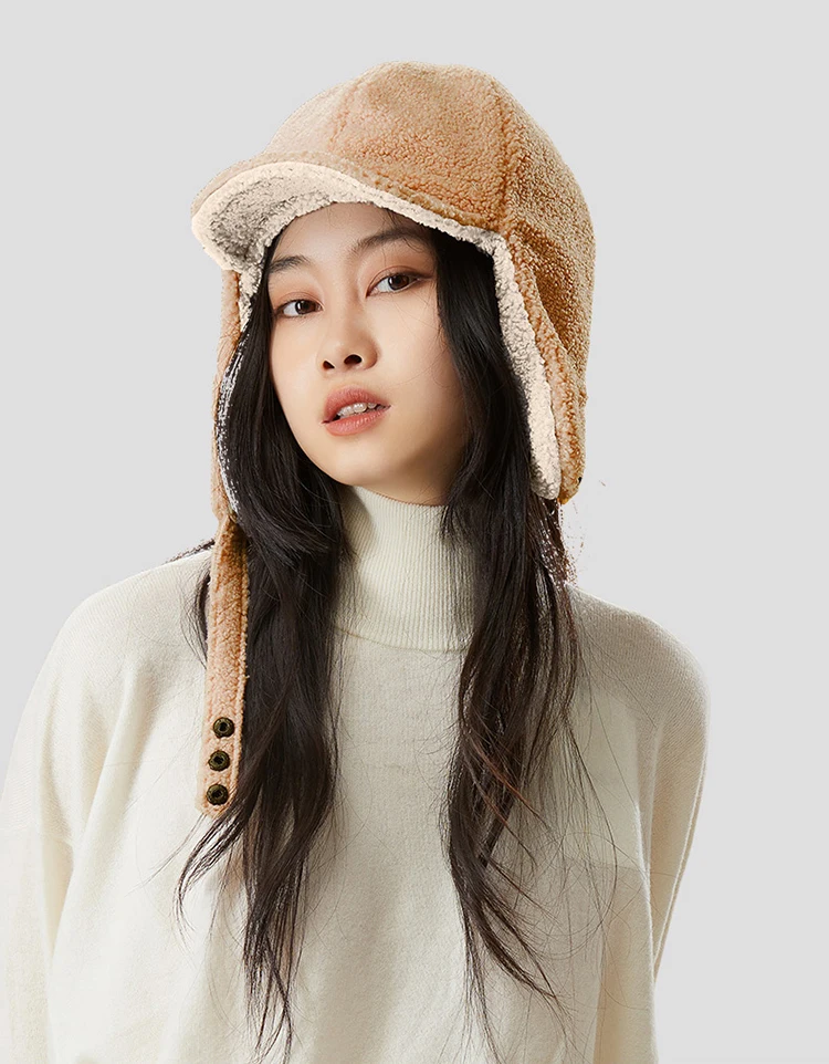 Женская двухсторонняя шапка-бомбер OhSunny, однотонная теплая ветрозащитная шапка с ушами для осени и зимы