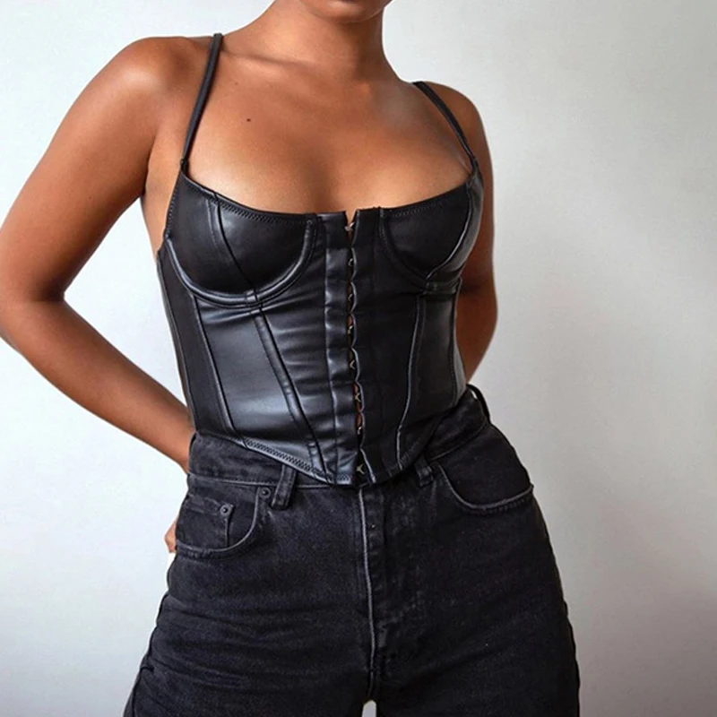 Женский корсет, сексуальный укороченный топ из искусственной кожи в стиле панк-рок, с глубоким вырезом, для клувечерние, Повседневная Уличная одежда, новинка 2021