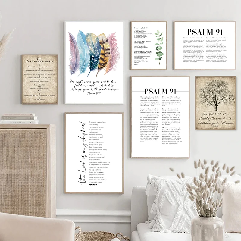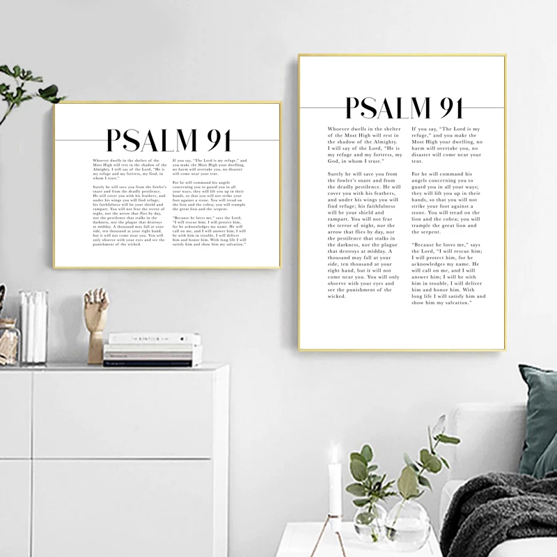 Псалом 91, настенное изображение из священного писания, картина с изображением библейских стихов для украшения дома, плакаты, минималистичные принты