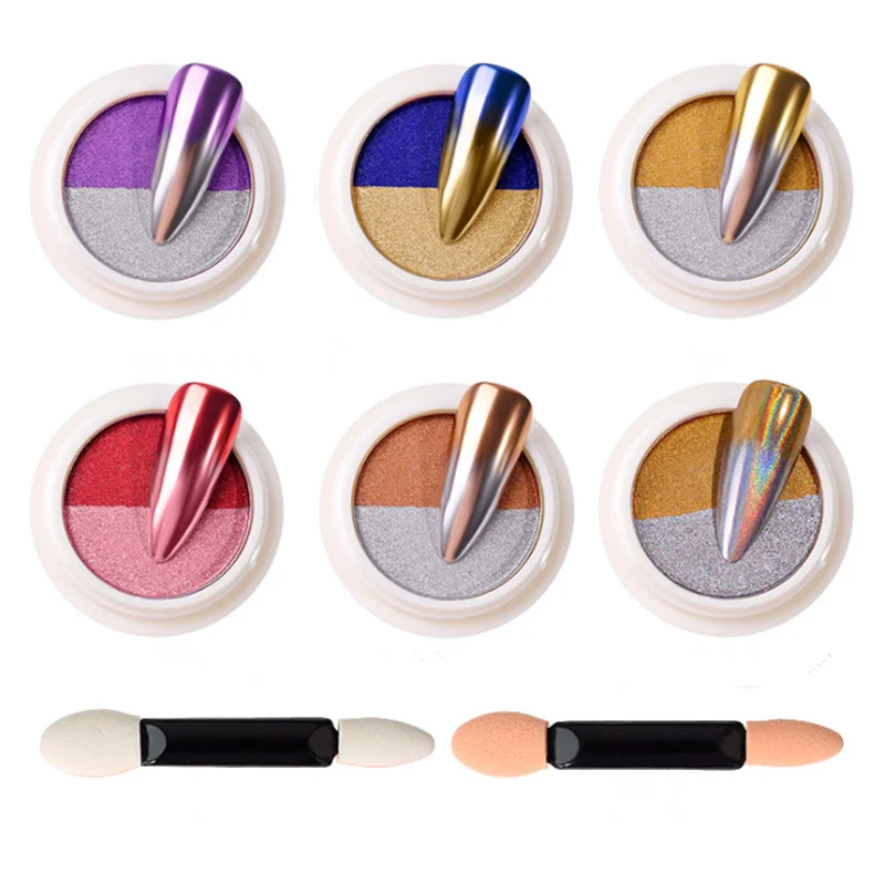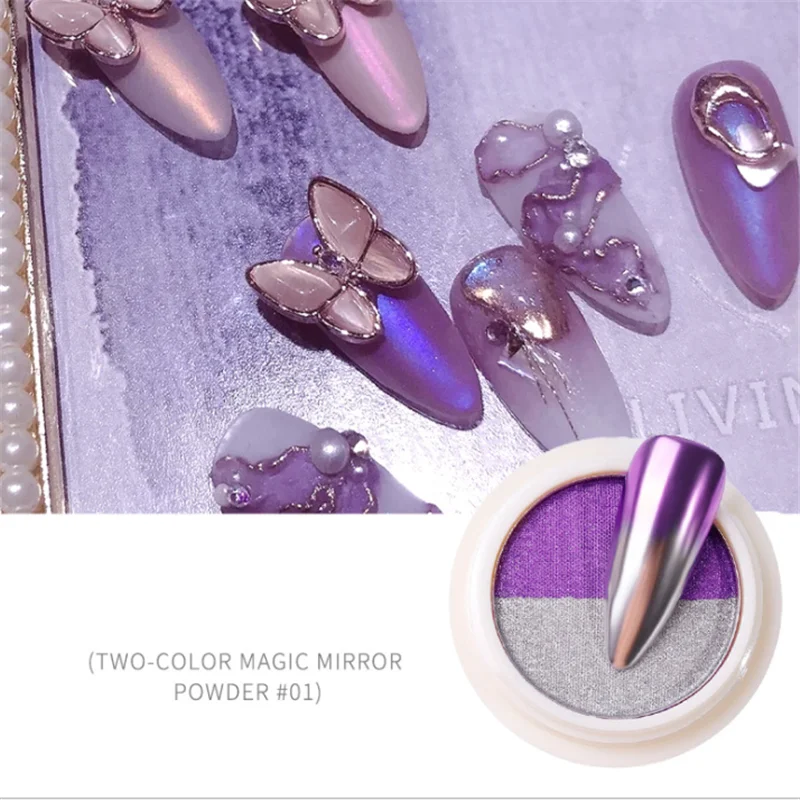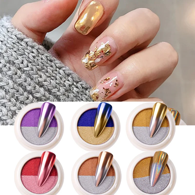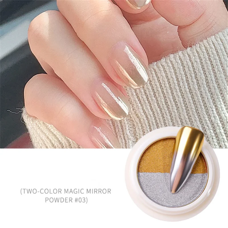 Пудра-блеск для ногтей, двухцветная, металлик, золото, серебро, 1 коробка