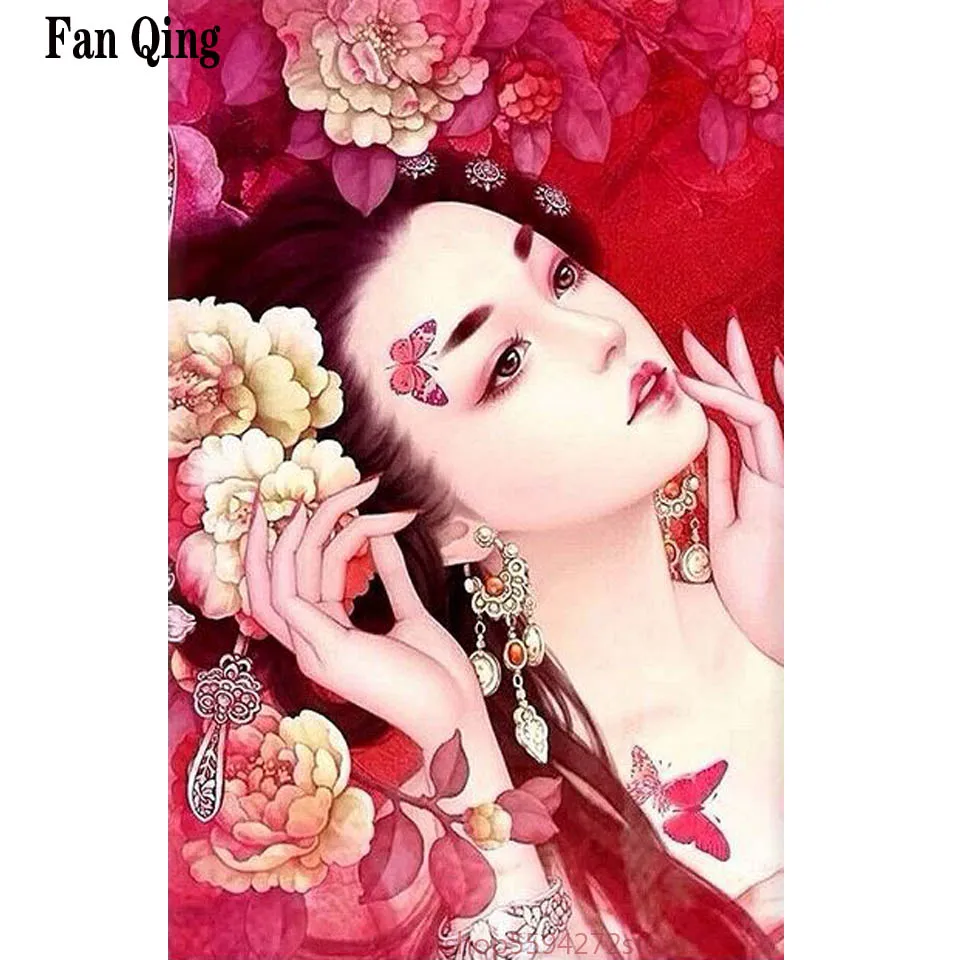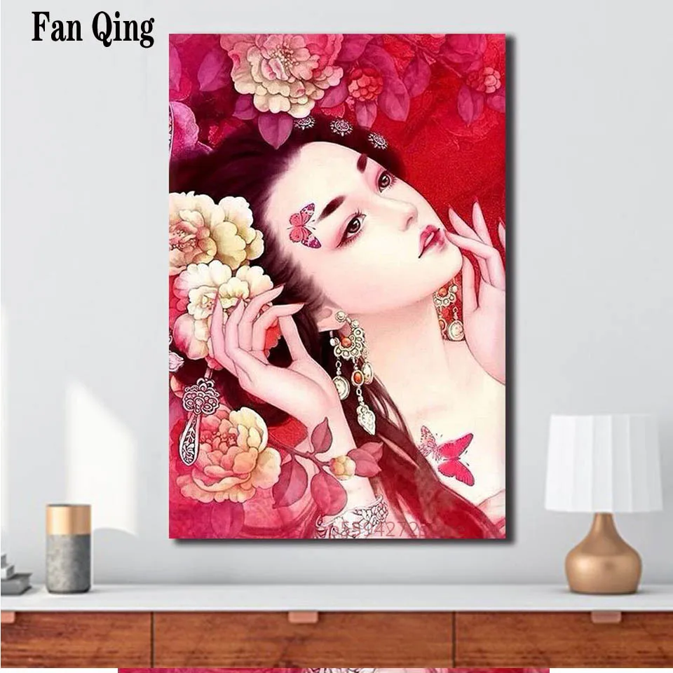 Японская женщина 5D DIY Алмазная картина цветок полностью квадратные круглые полимерные Стразы Вышивка крестиком Мозаика украшение для дома