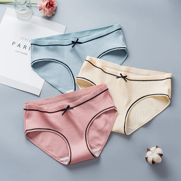 Комплект женских трусиков 3 шт.лот, однотонные хлопковые трусики со...