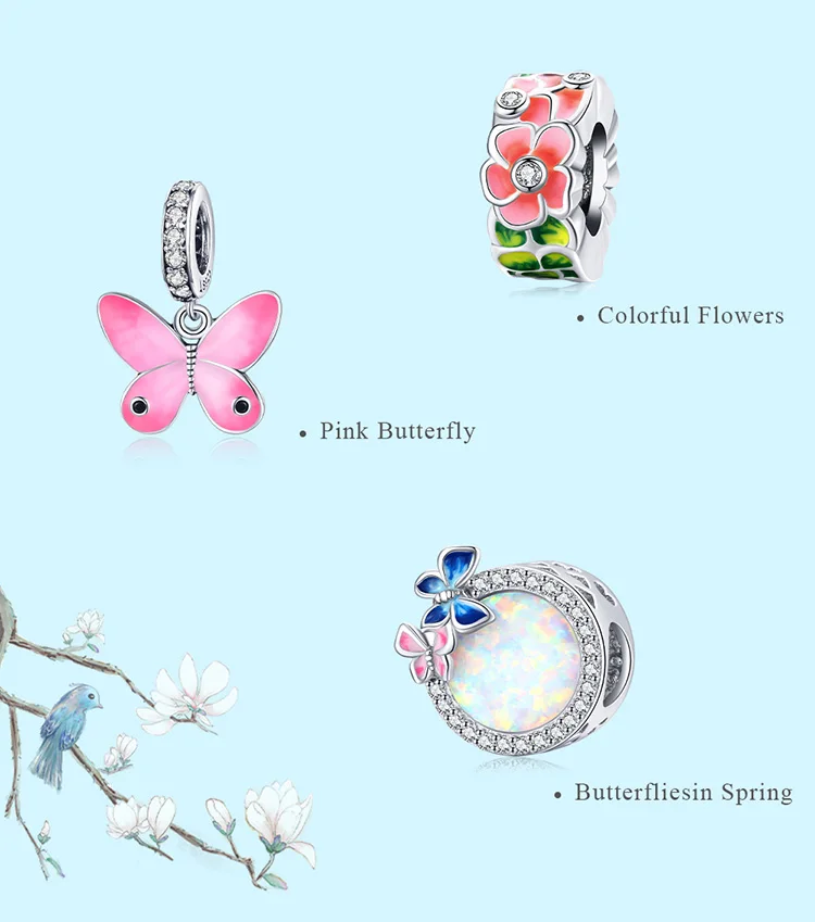WOSTU 925 стерлингового серебра бисера летающих бабочек Шарм Голуба...