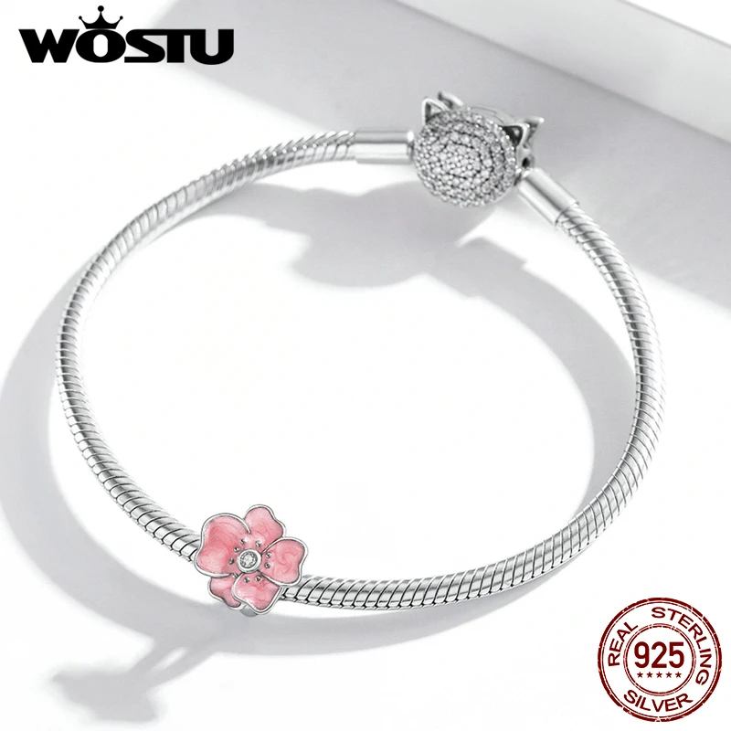 WOSTU 925 пробы серебряные божьи коровки и цветы СЕРДЦЕ бусины розо...