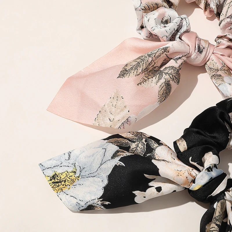 Женские резинки для волос с кроличьими ушками, эластичные резинки для волос с цветочным принтом, маленькие свежие резинки, резинки для волос, аксессуары для волос для девочек