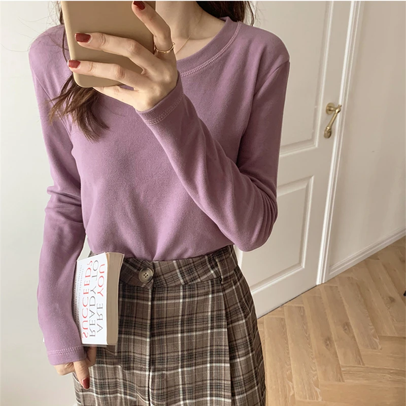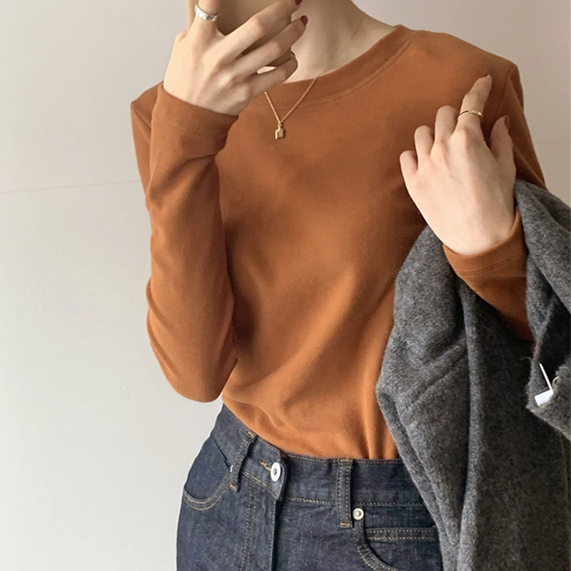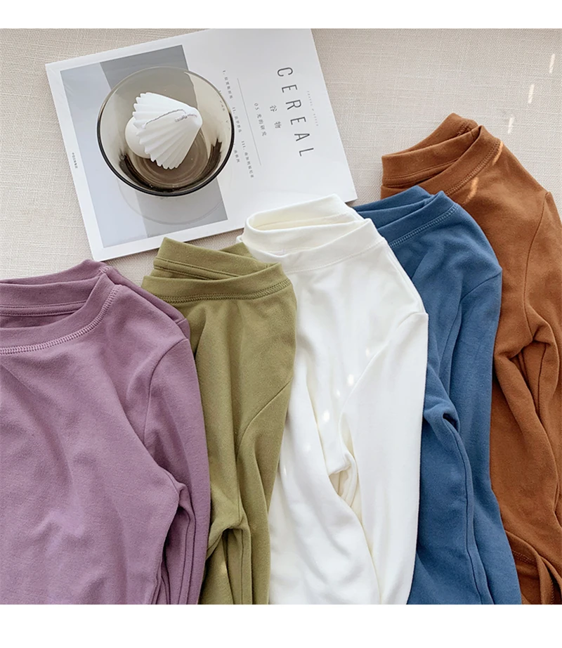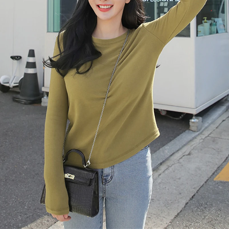 Футболка Colorfaith Женская однотонная, базовая модная утепленная, в стиле оверсайз, короткий топ, T6045, весна-осень 2021