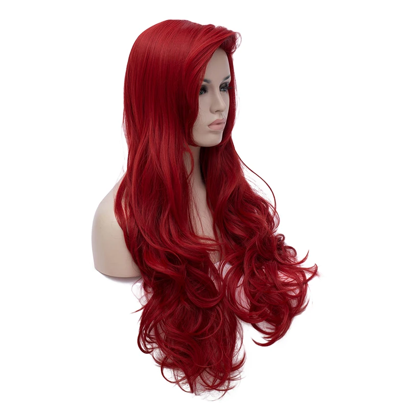 Длинный парик для косплея Ариэль, термостойкий искусственный волос с волнистыми волосами, короткая Русалочка красного вина, кролик Джессика, с шапочкой