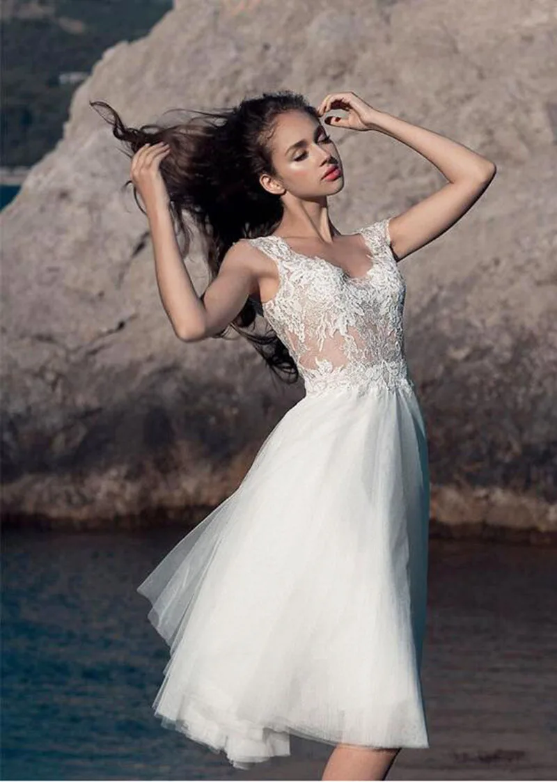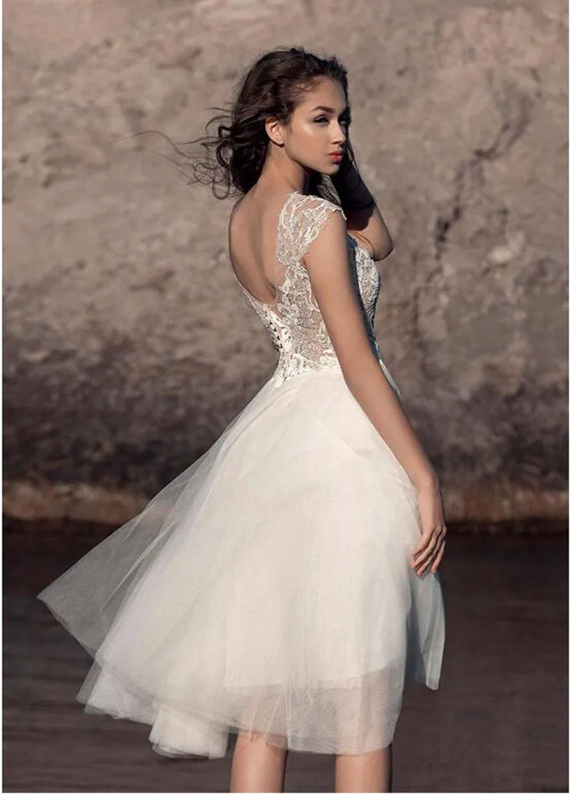 Женское свадебное платье до колен, короткое Кружевное платье невесты, элегантное платье невесты в стиле бохо, лето 2021