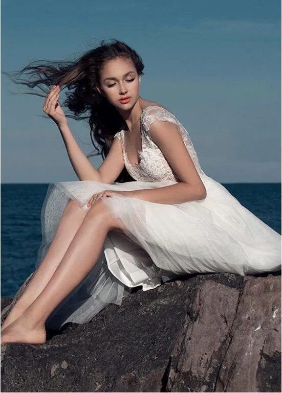 Пляжное Короткое свадебное платье, с рукавами, длиной до середины и...