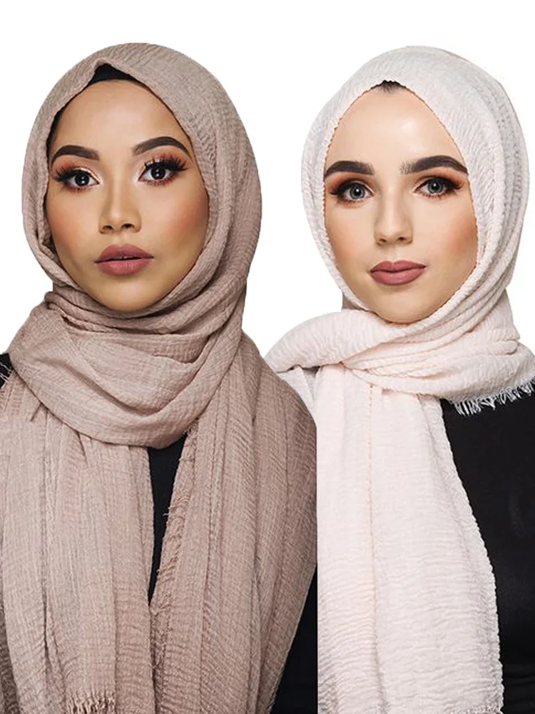 Мусульманский хиджаб с морщинами, Женский мягкий хлопковый головной платок, шали и повязки, исламский головной платок, повязка на голову 180x95 см