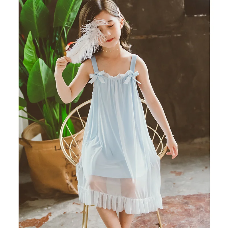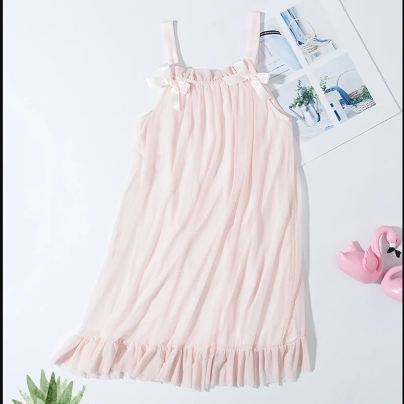 Летняя ночная рубашка принцессы для девочек детские пижамы Домашняя рубашка 2021 г. Детская удобная свободная ночная рубашка из хлопка с оборками