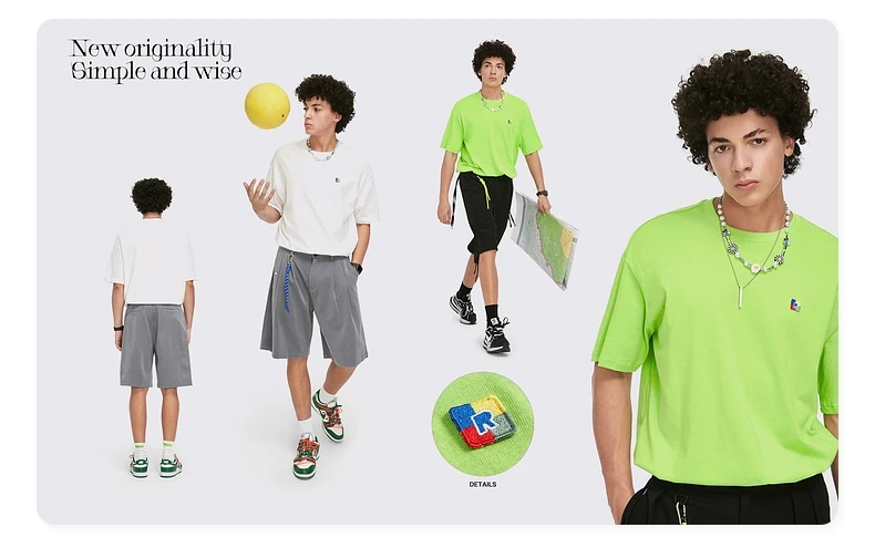 Футболка Хлопковая мужская, с коротким рукавом, ярких цветов, 1632S21