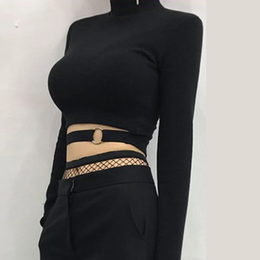 Женский укороченный топ с вырезами, откровенная короткая футболка с длинным рукавом, Клубная одежда в уличном стиле для бара, весна 2022